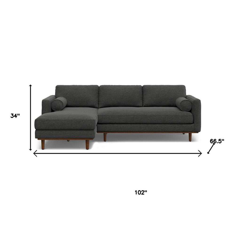 102" Gray Fabric Sofa With Brown Legs