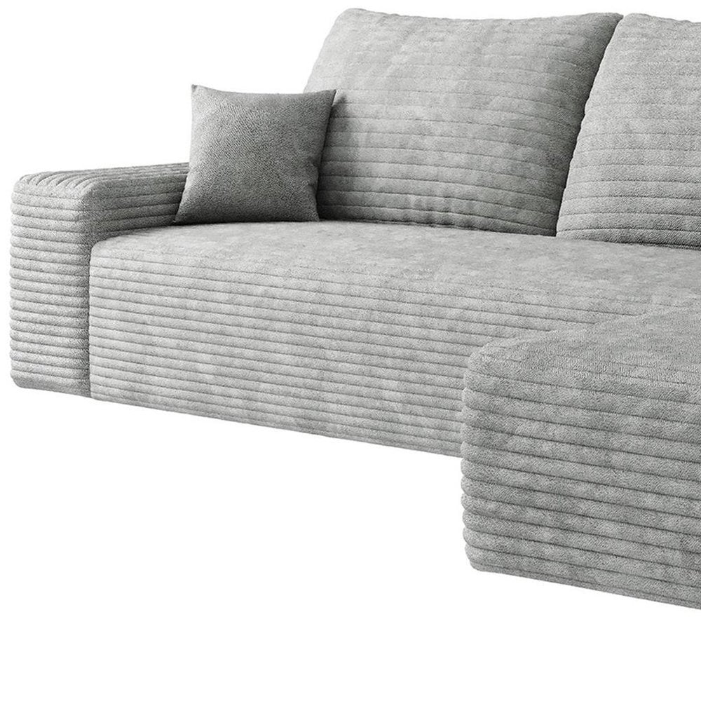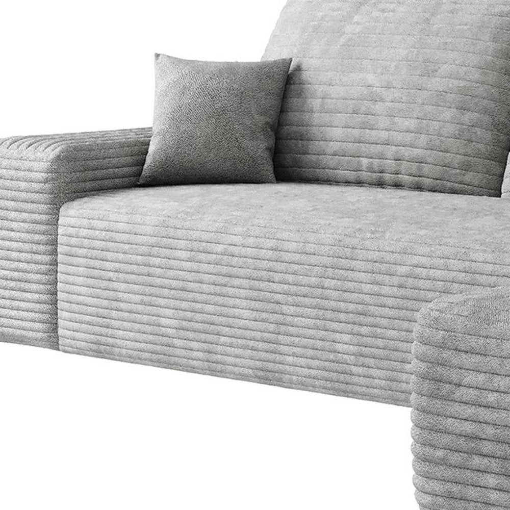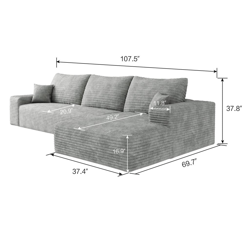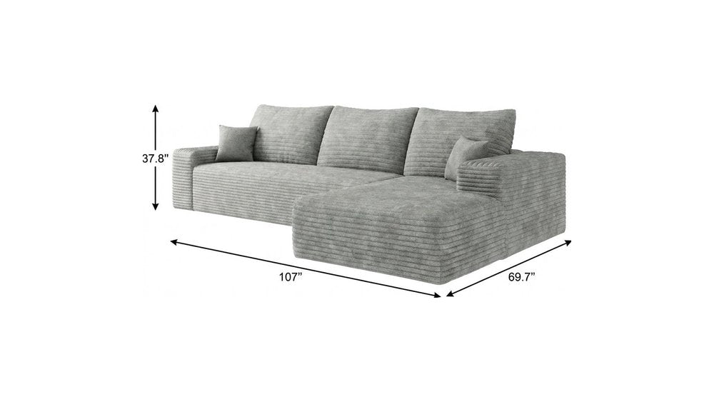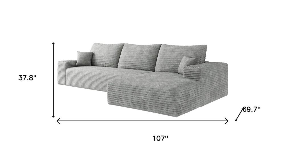 107" Gray Corduroy Modular Compression Foam Sofa With Toss Pillows
