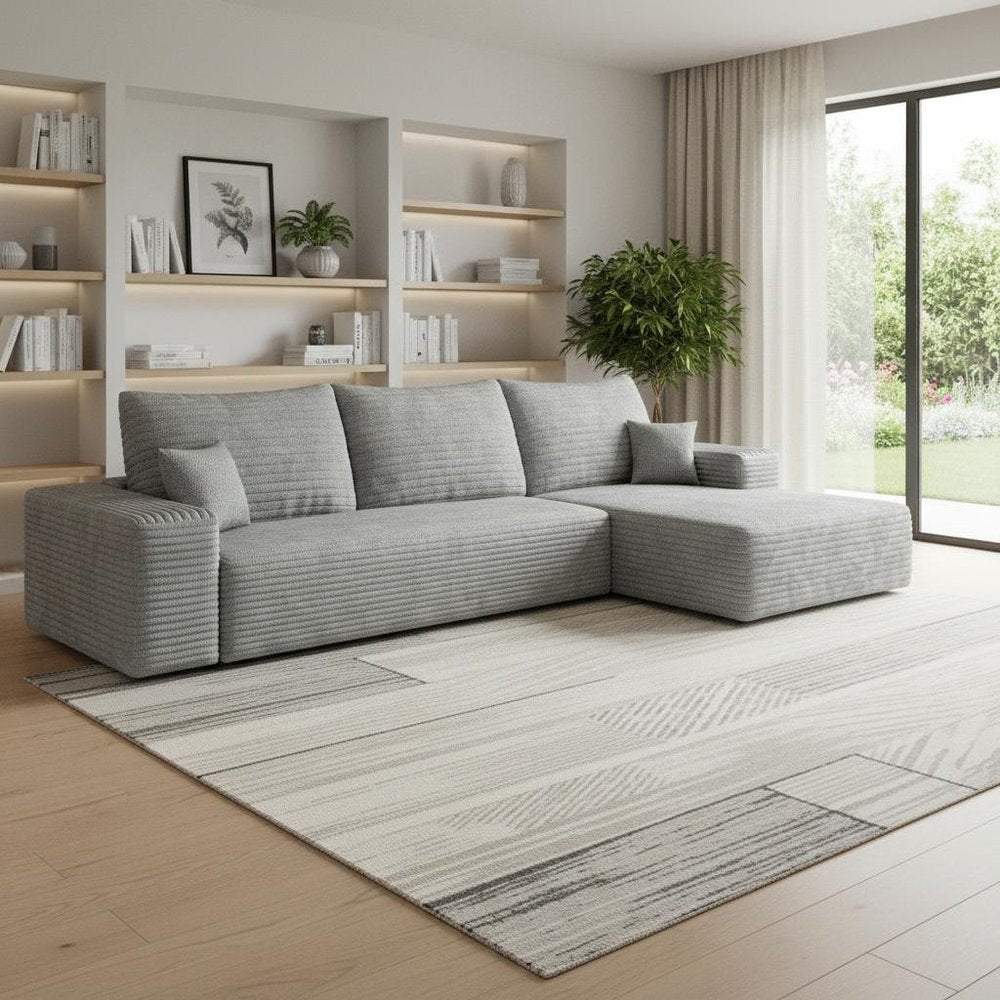 Add an air of fashion to your space with this fabulous 107-inch gray corduroy modular compression foam sofa with toss... Read more