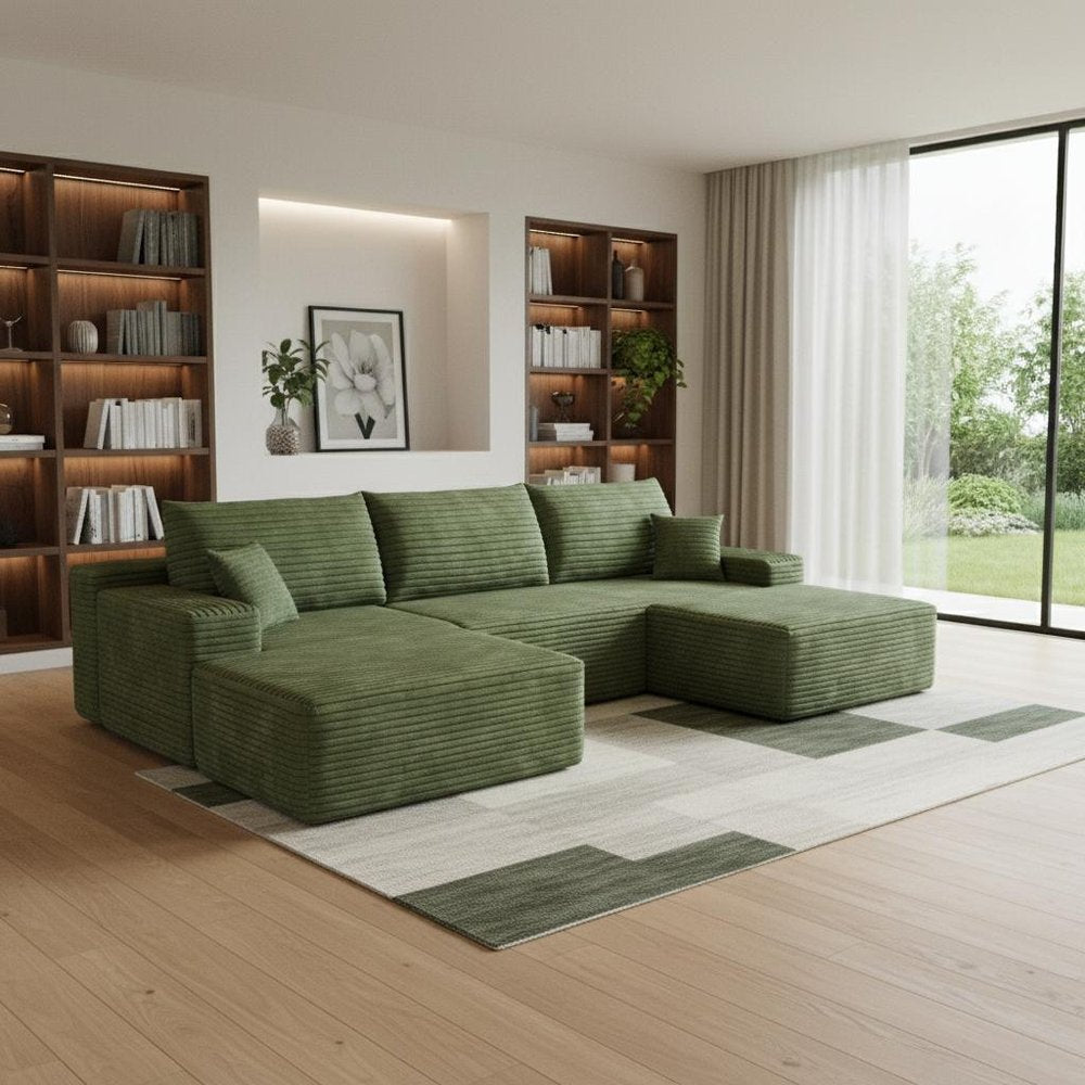 Designed for comfort and good looks, this 107-inch green corduroy modular compression foam sofa with ottoman and toss pillows is... Read more