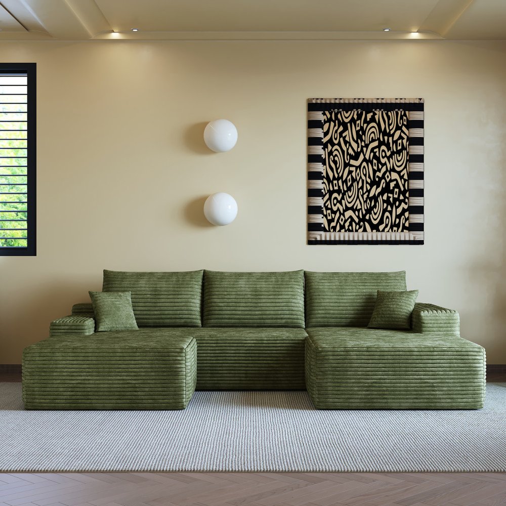 Transform your home's interior with this luxurious 107-inch green corduroy modular compression foam sofa with ottoman and toss pillows. This...