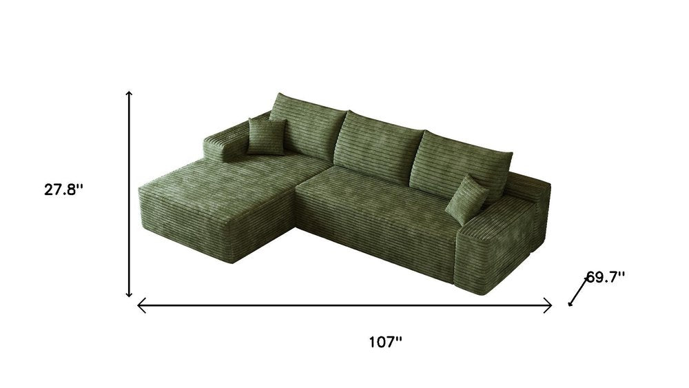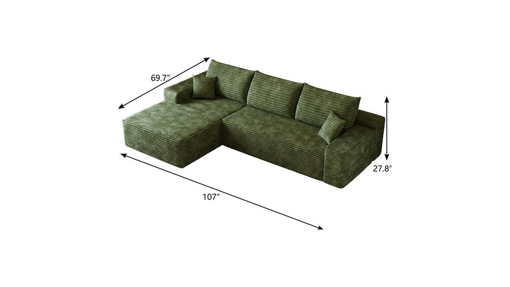 107" Green Corduroy Modular Compression Foam Sofa With Toss Pillows