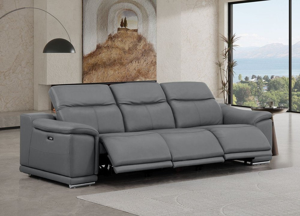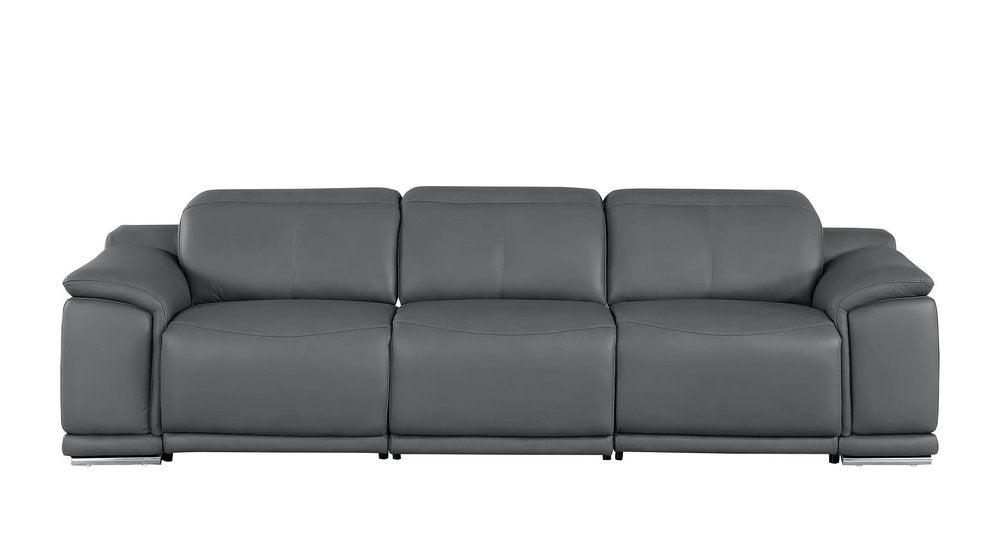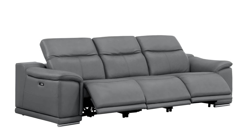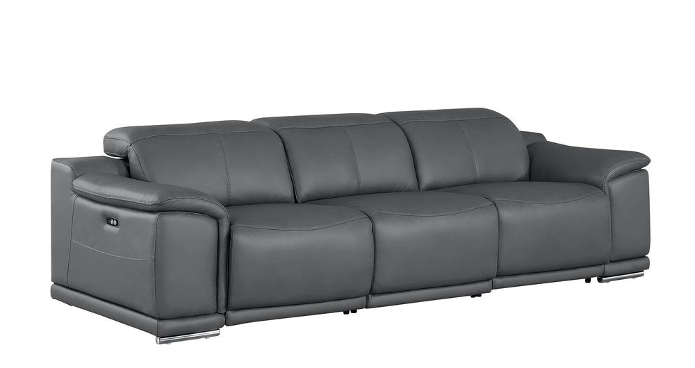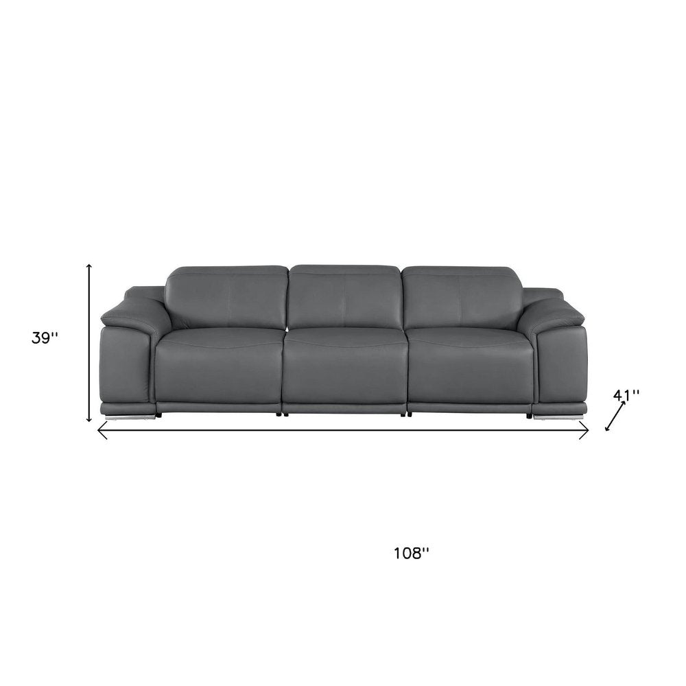 107" Dark Gray Top Grain Leather Reclining USB Sofa