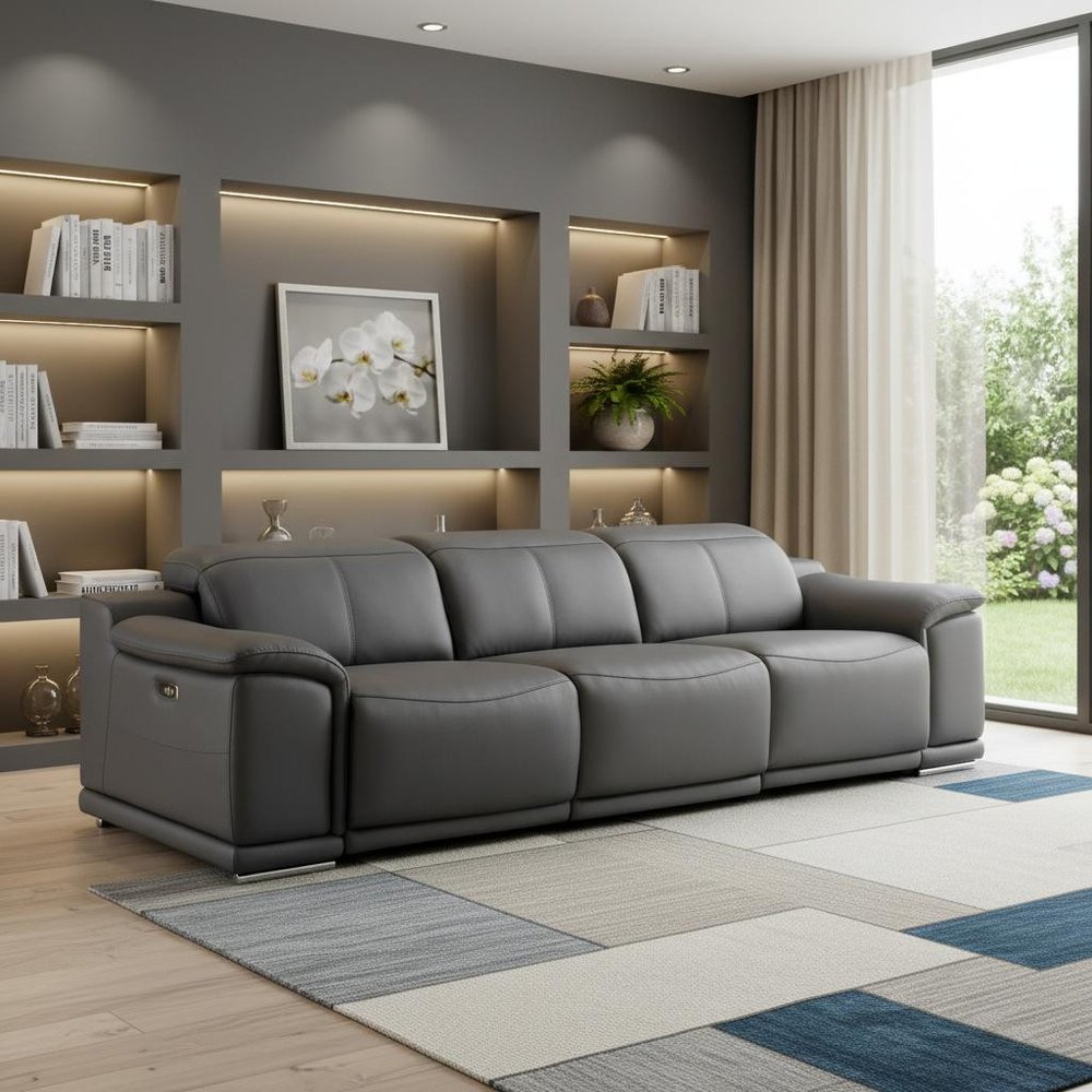 An interior designer's dream, this buttery soft high grade leather 107-inch dark gray top grain leather reclining usb sofa will... Read more