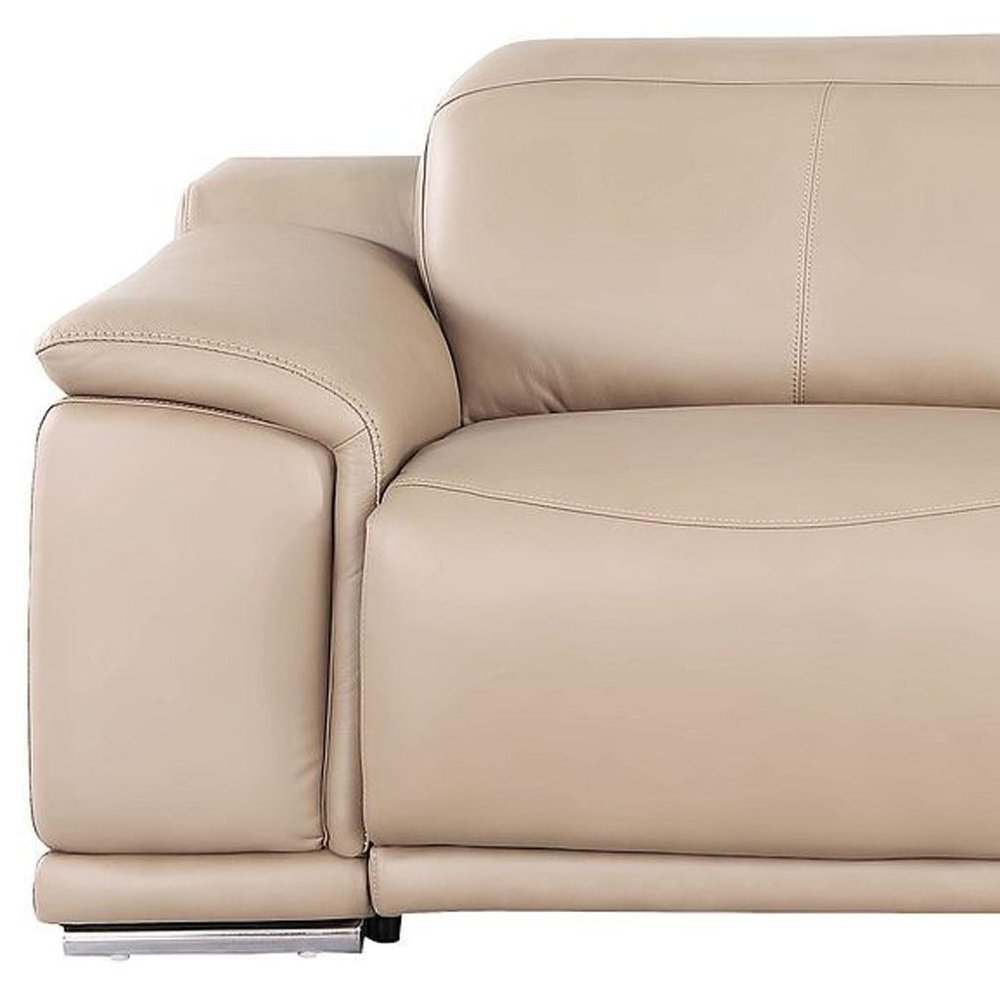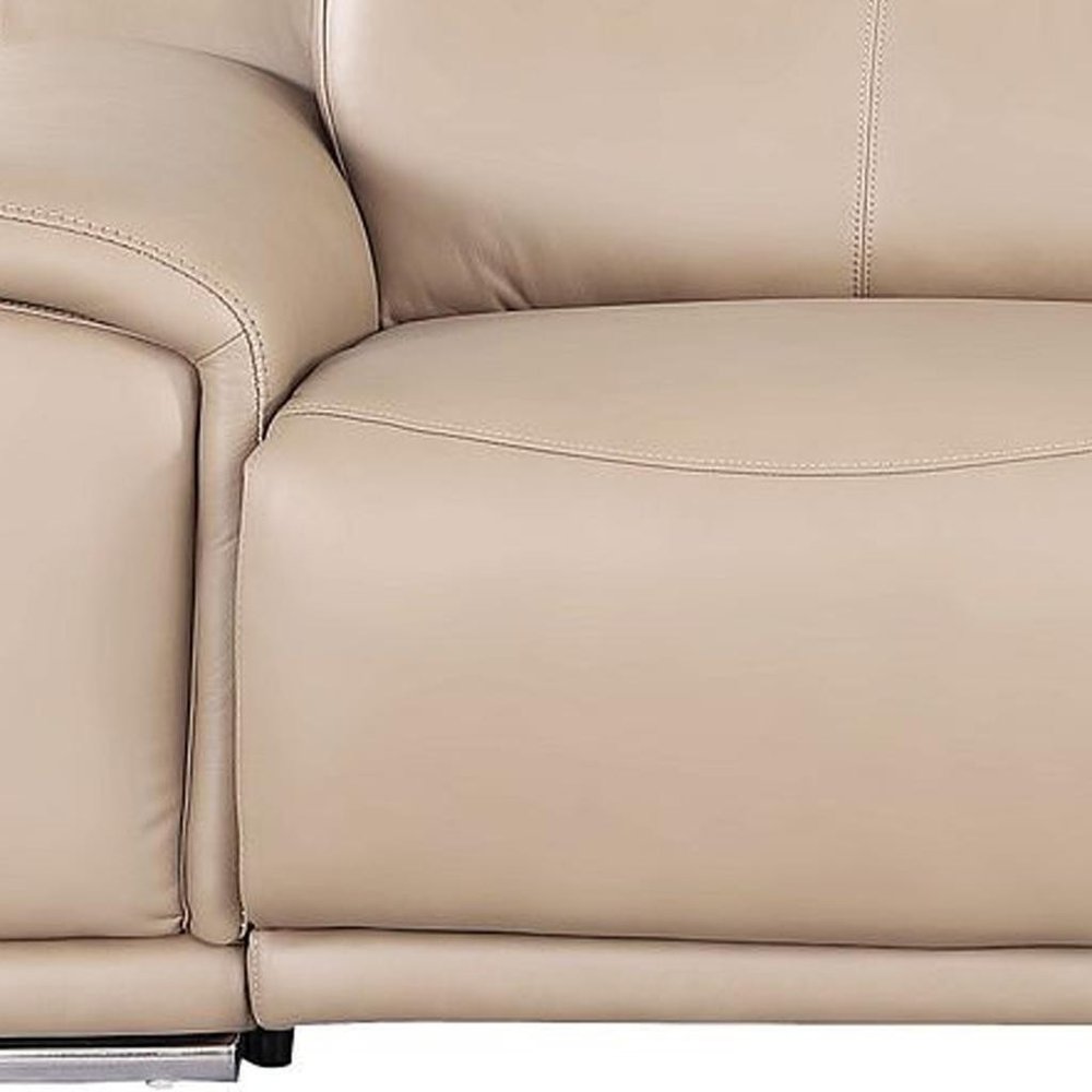 107" Beige Top Grain Leather Reclining USB Sofa