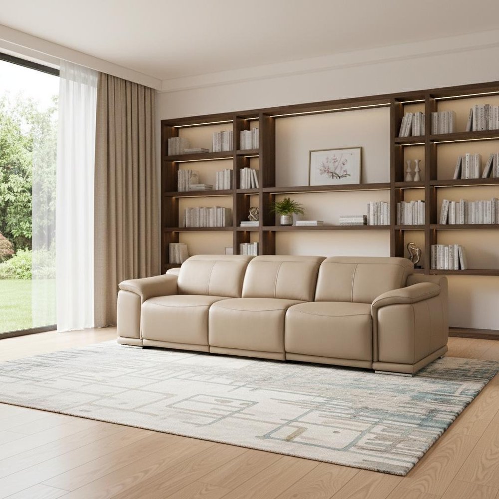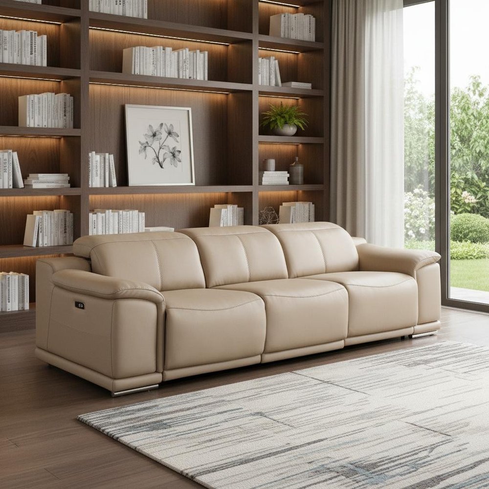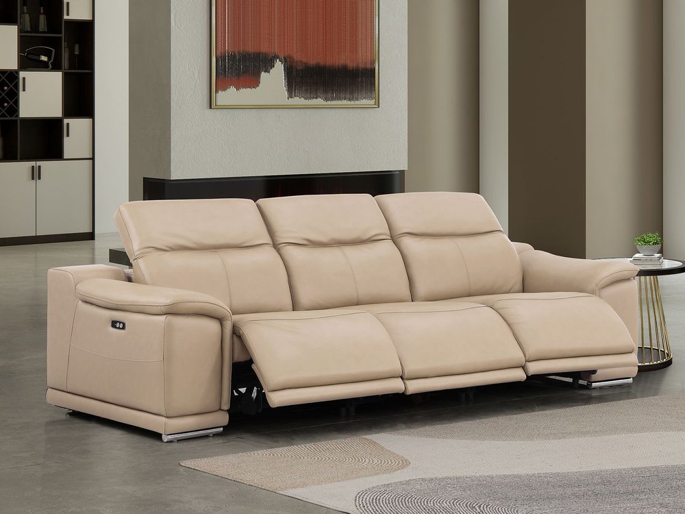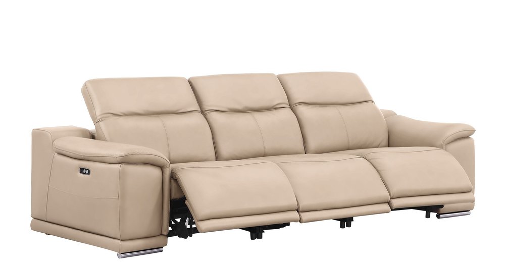 Superior construction from fabulously soft and high grade leather gives this 107-inch beige top grain leather reclining usb sofa a... Read more