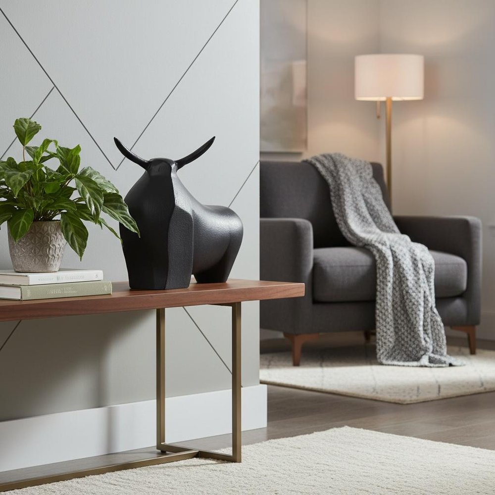 This 11-inch black aluminum bull tabletop sculpture will add a beautiful decorative accent to your decor. Great to use on... Read more