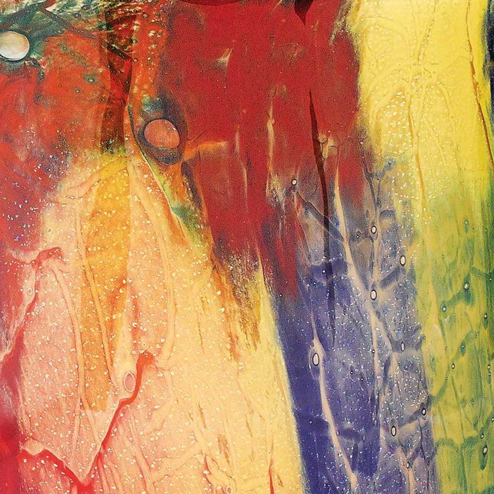 11" Red Purple And Yellow Abstract Oval Murano Glass Table Vase