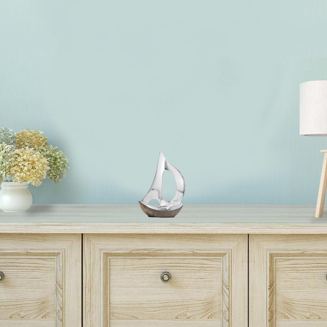 12" Brown and Silver Buffed Aluminum Sailboat Tabletop Sculpture
