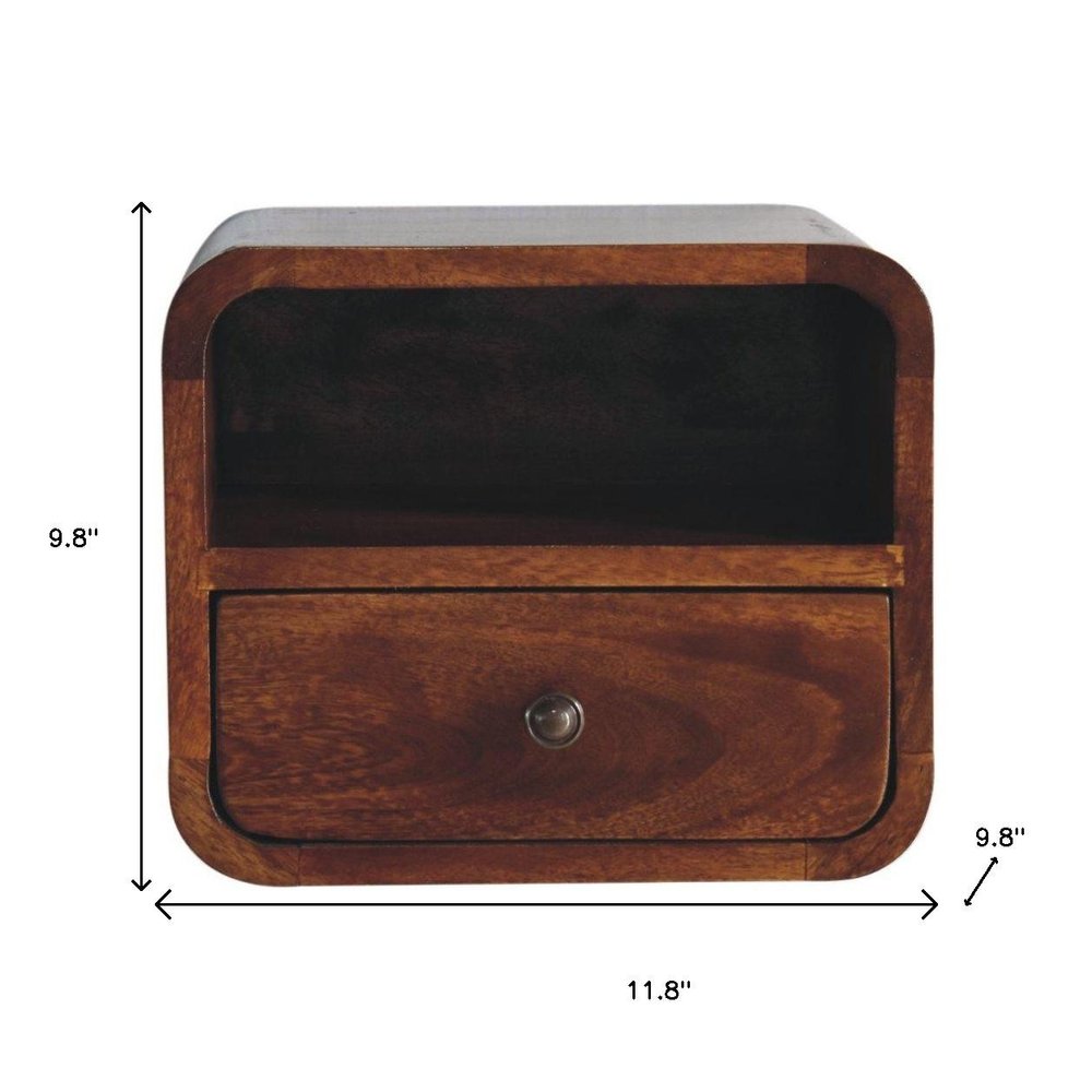 12" Brown Solid Wood Square One Drawer Floating Nightstand