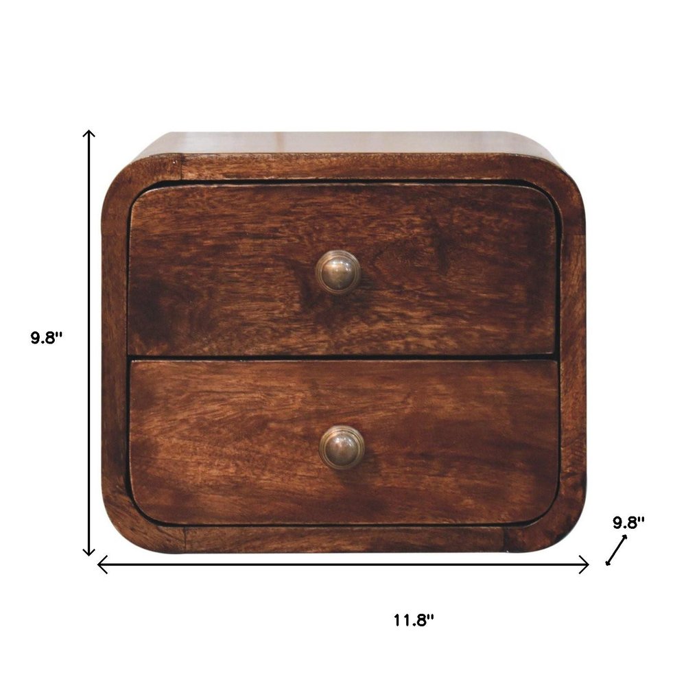 12" Walnut Solid Wood Square Two Drawer Floating Nightstand