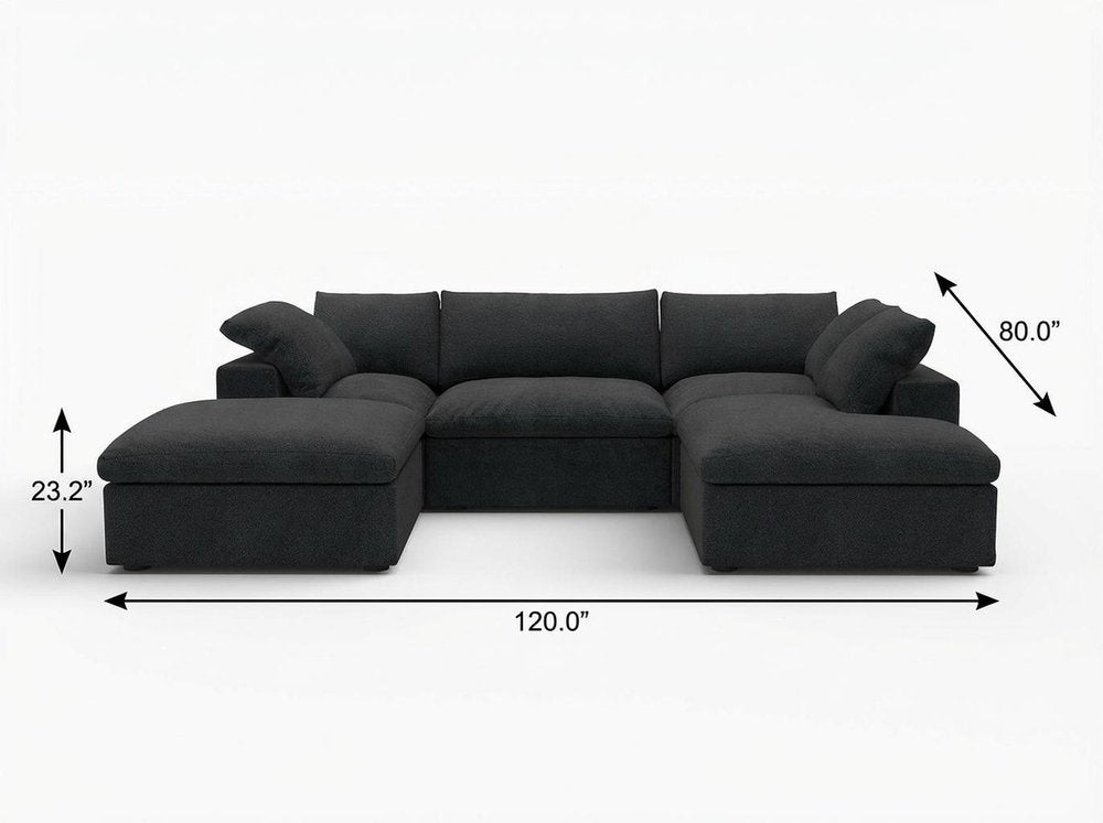 Designed for comfort and good looks, this 120-inch black linen blend modular wood sofa with ottoman and storage is a... Read more