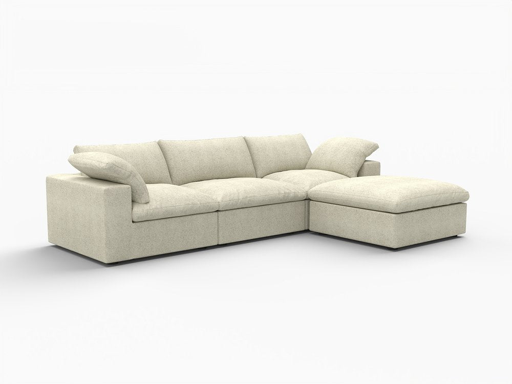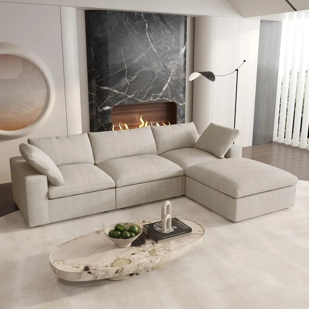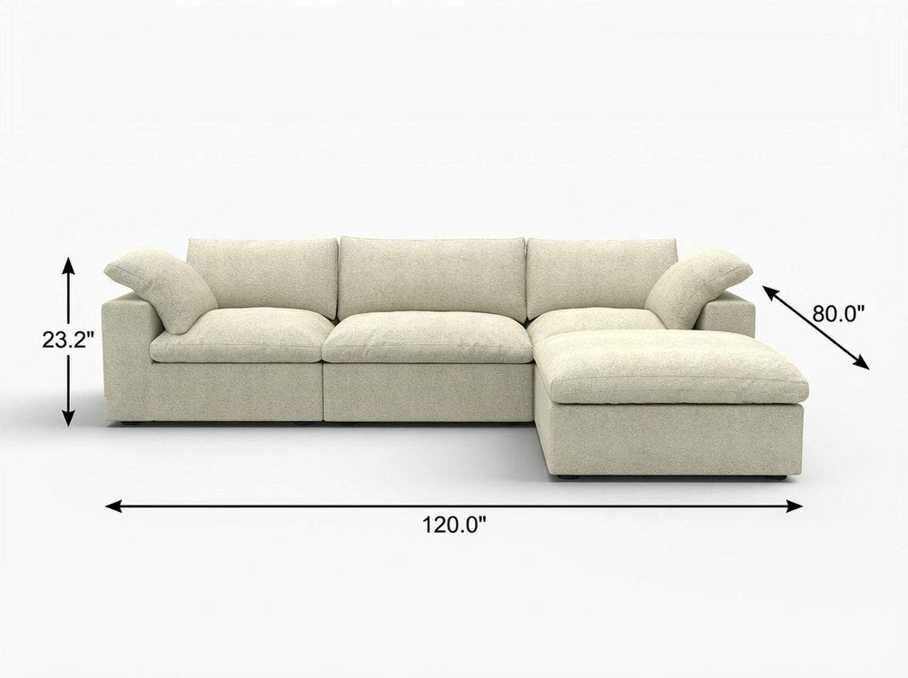 120" Khaki Linen Blend Modular Wood Sofa With Ottoman And Storage