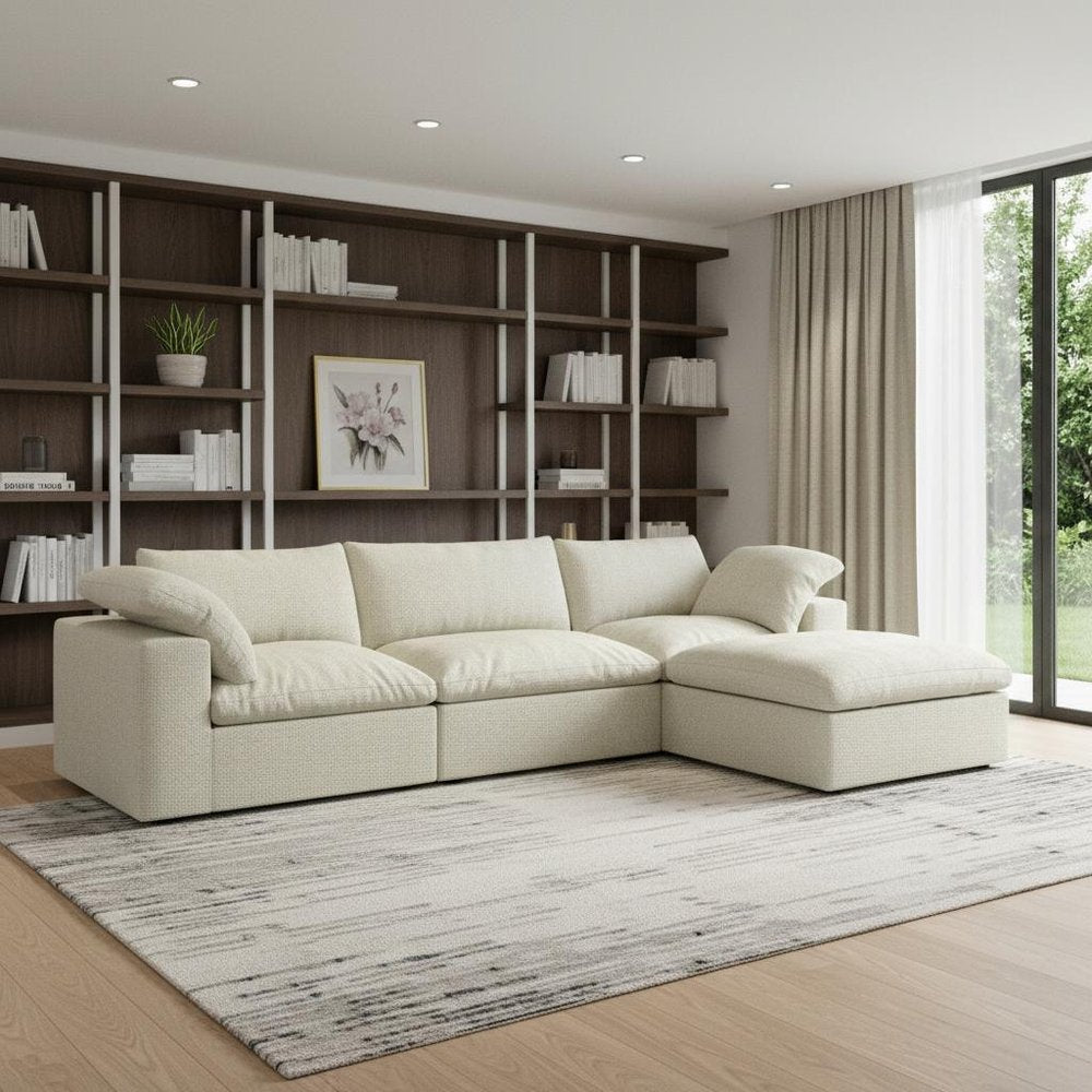Add an air of fashion to your space with this fabulous 120-inch khaki linen blend modular wood sofa with ottoman... Read more