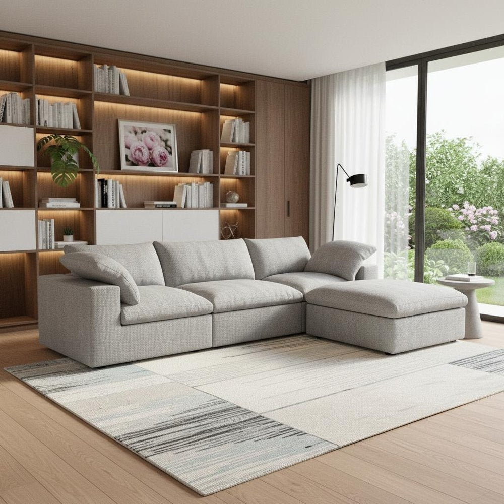 Designed for comfort and good looks, this 120-inch light gray linen blend modular sofa with ottoman and storage is a... Read more