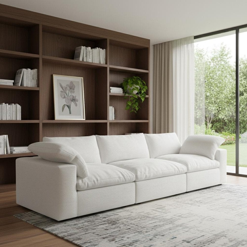 120" White Linen Blend Modular Sofa And Storage