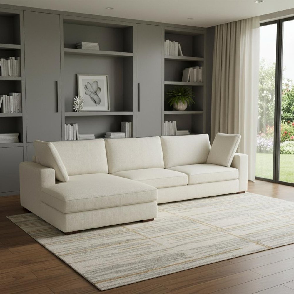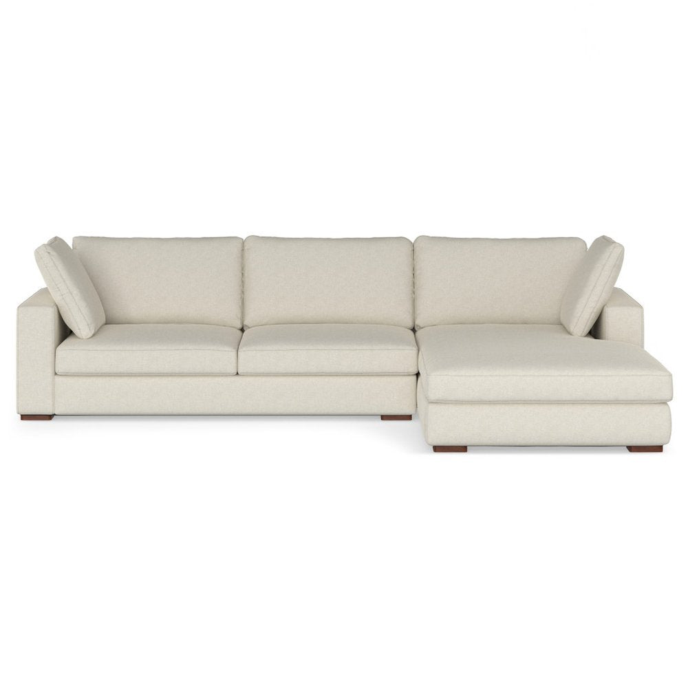 Designed for comfort and good looks, this 122-inch cream fabric sofa with brown legs is a great option to anchor... Read more