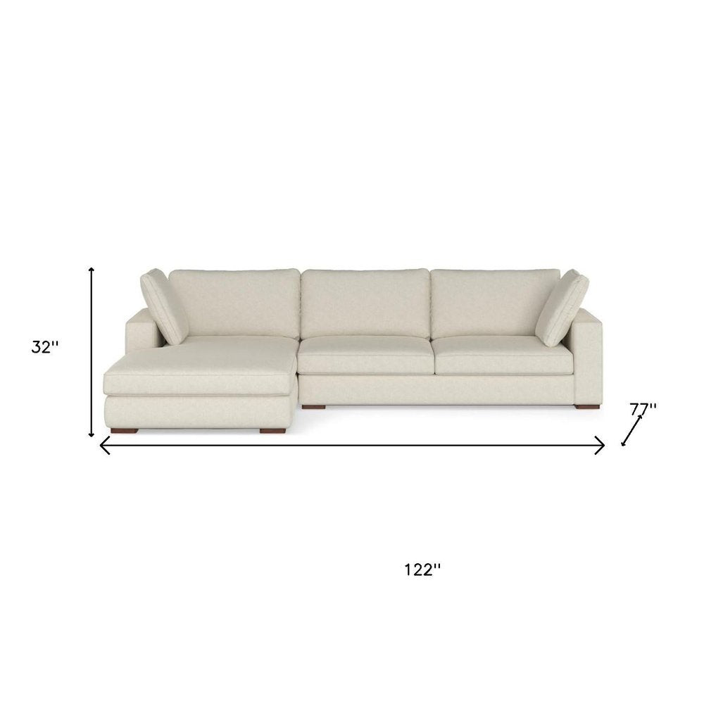 122" Cream Fabric Sofa With Brown Legs