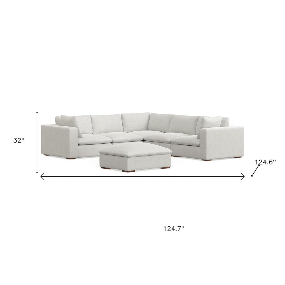 125" Gray Fabric Sofa With Ottoman With Brown Legs