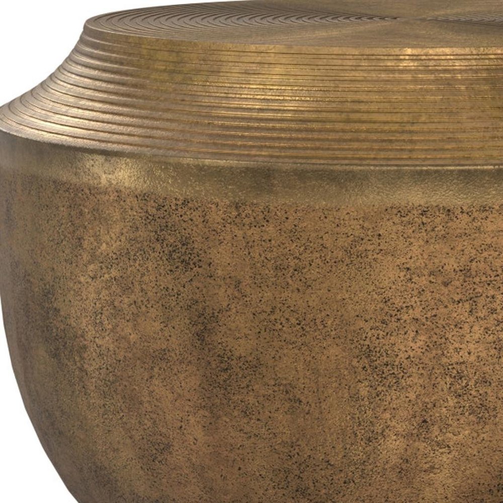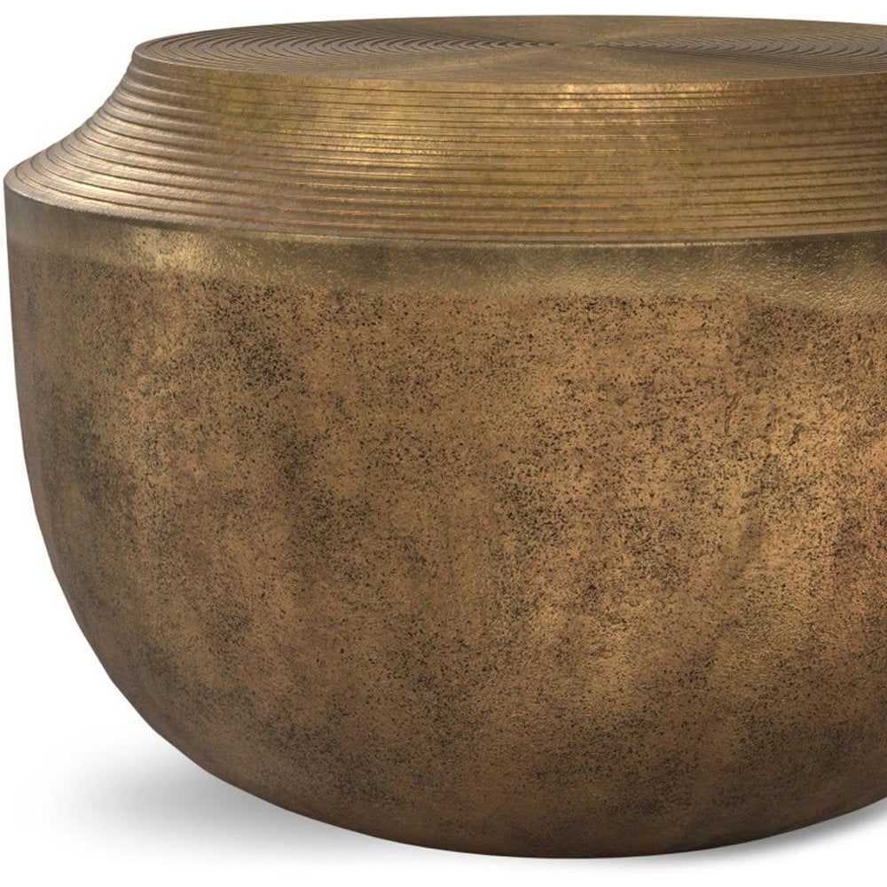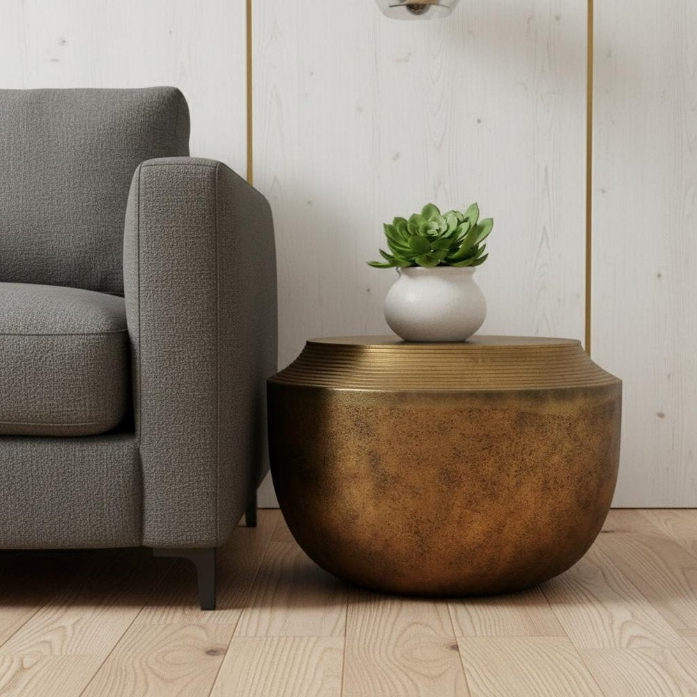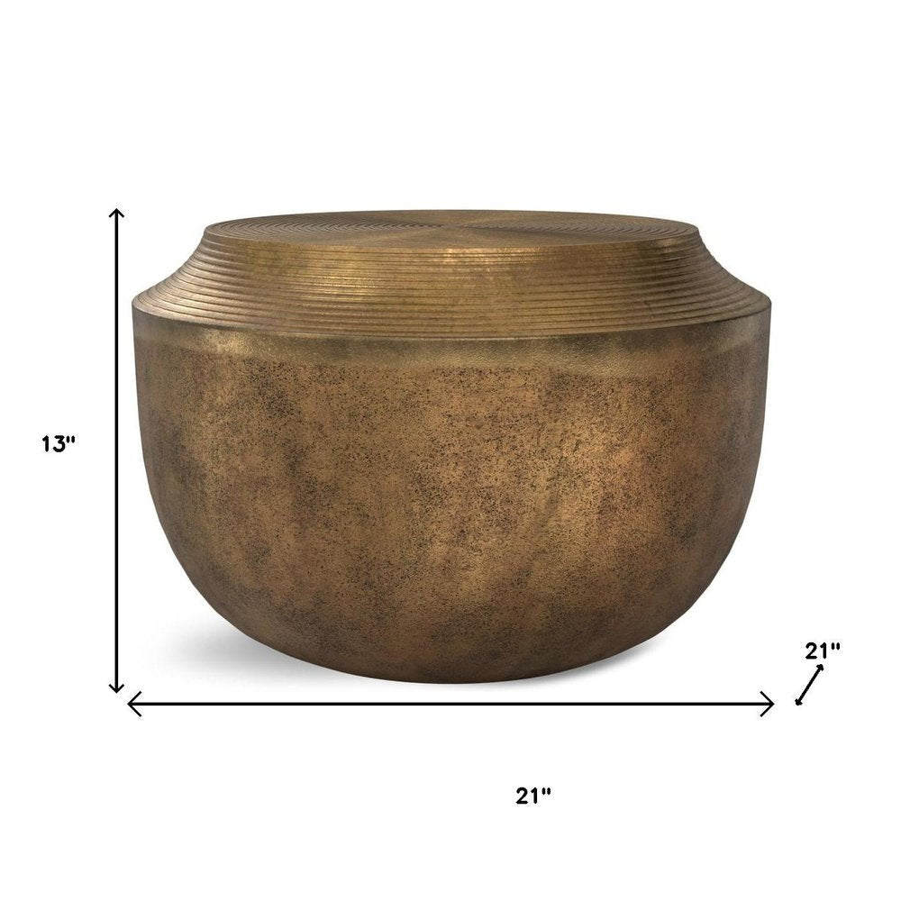 13" Antiqued Brass Aluminum Round Drum End Table