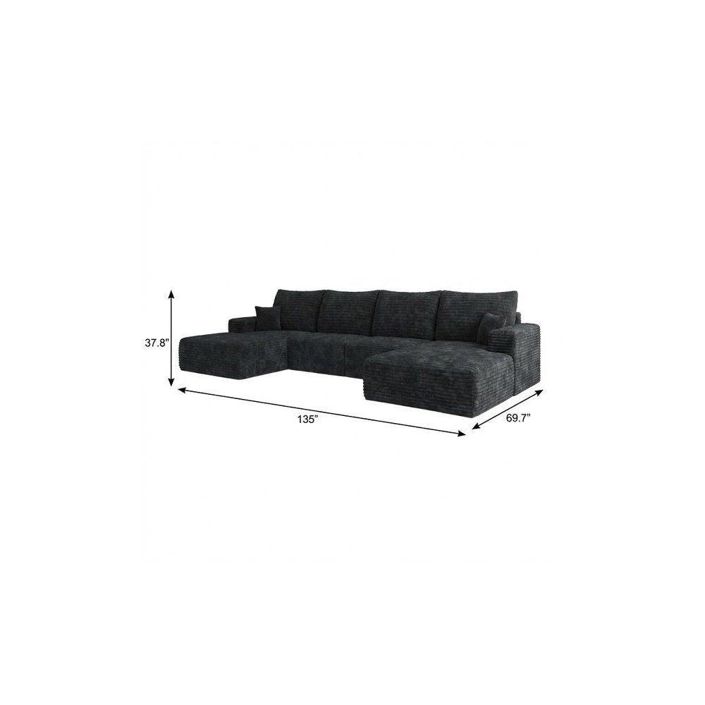 135" Black Corduroy Modular Compression Foam Sofa With Ottoman And Toss Pillows