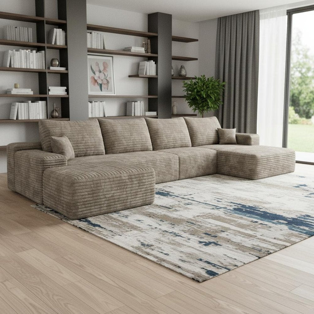 Transform your home's interior with this luxurious 135-inch camel corduroy modular compression foam sofa with ottoman and toss pillows. This...