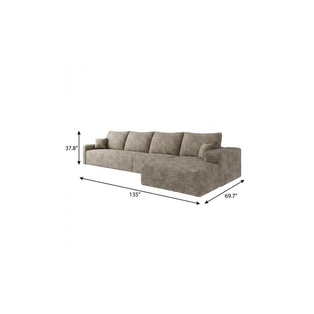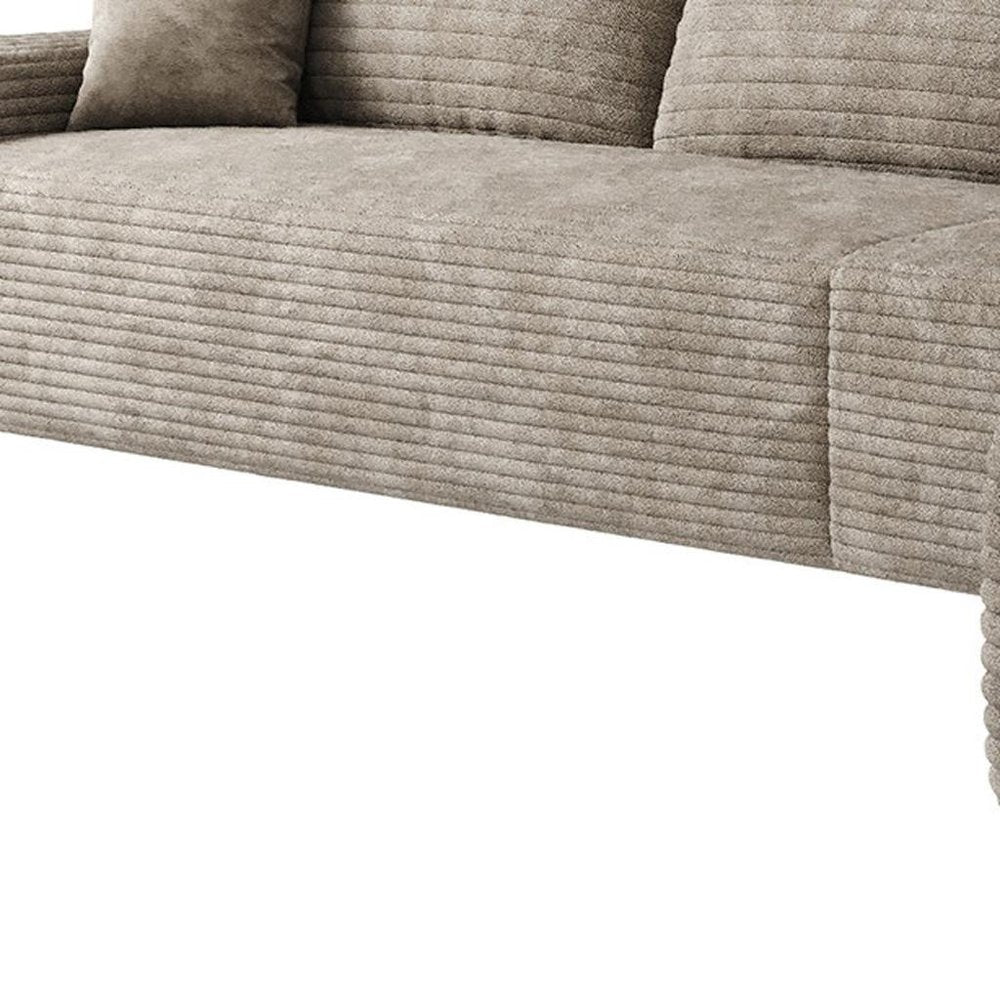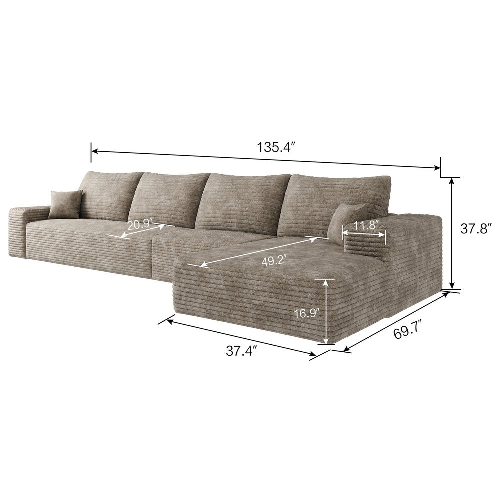 135" Camel Corduroy Modular Compression Foam Sofa With Toss Pillows