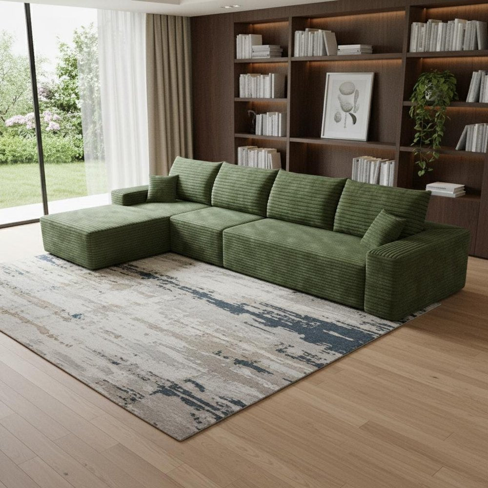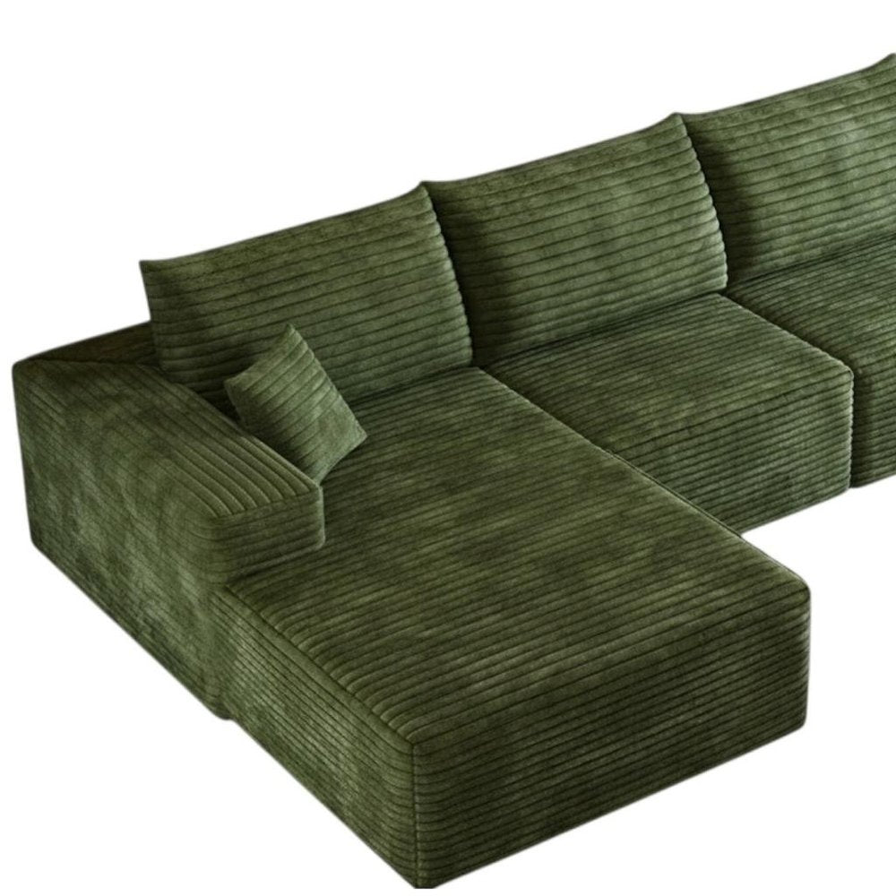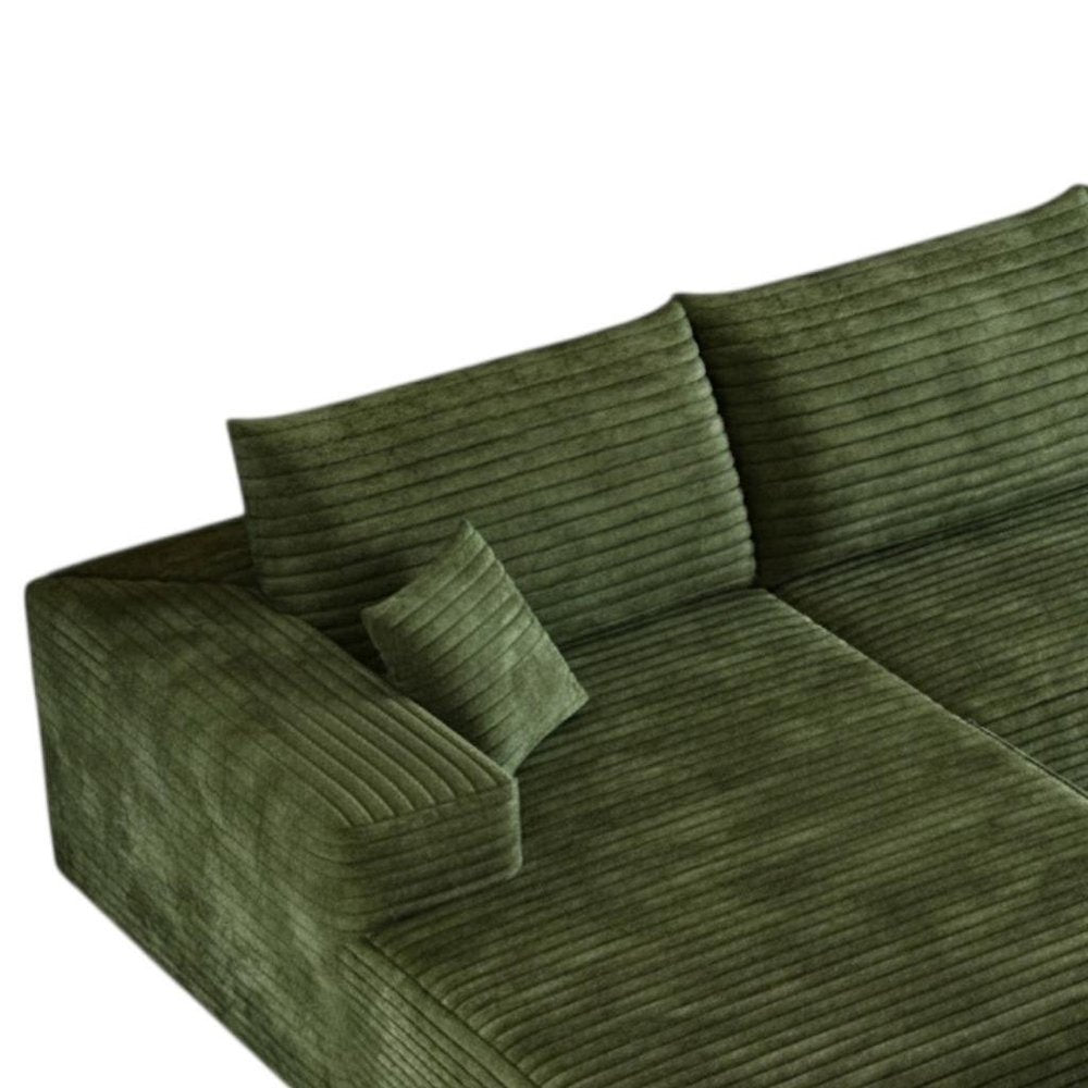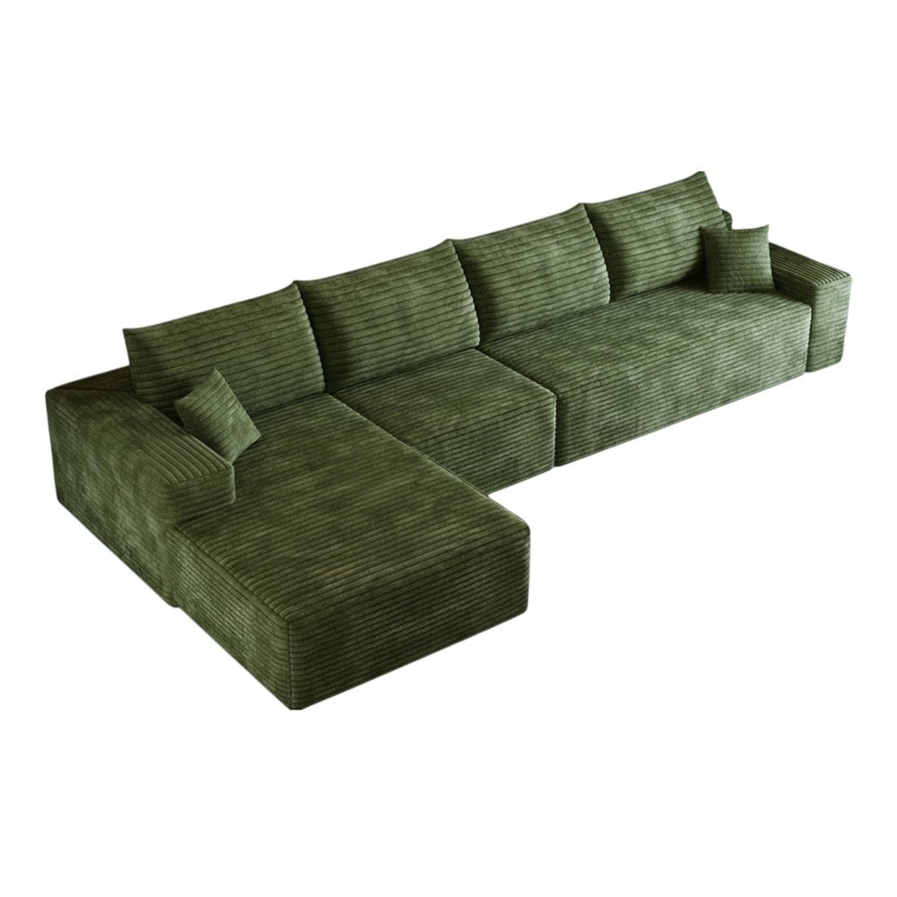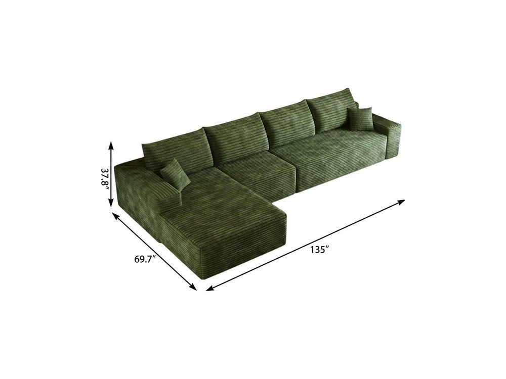 135" Green Corduroy Modular Compression Foam Sofa With Toss Pillows