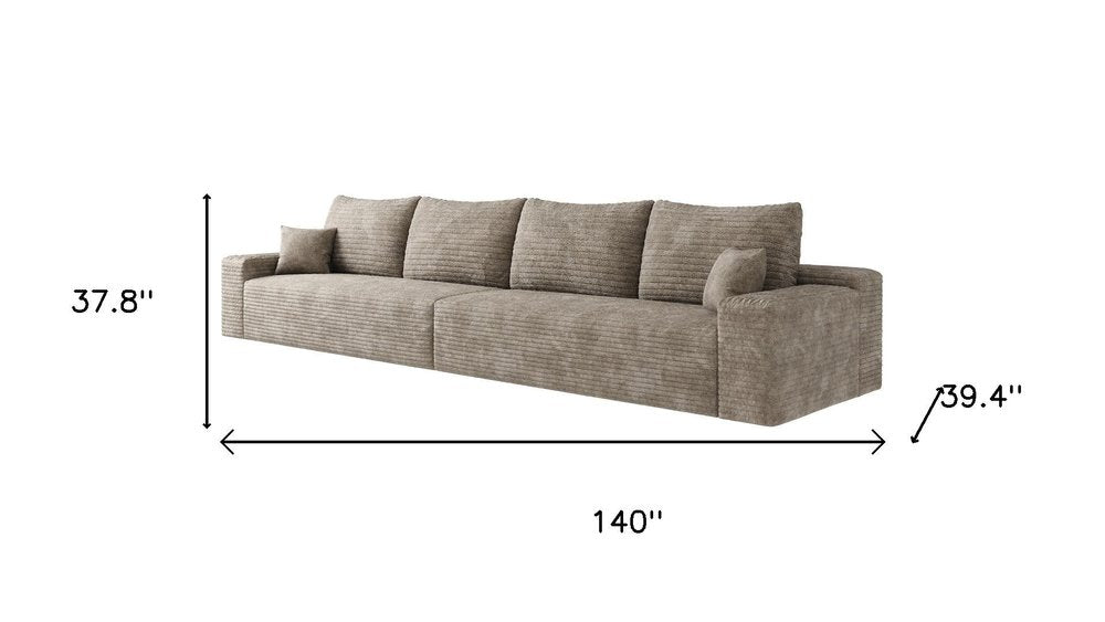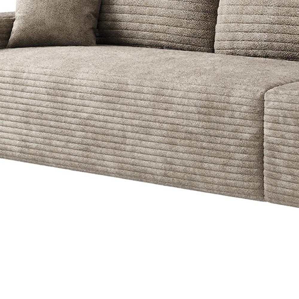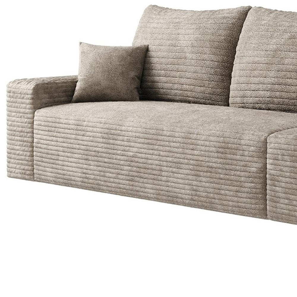 140" Camel Corduroy Modular Compression Foam Sofa With Toss Pillows