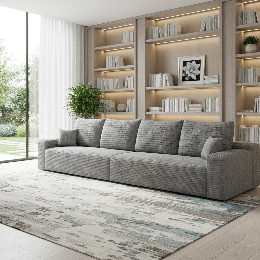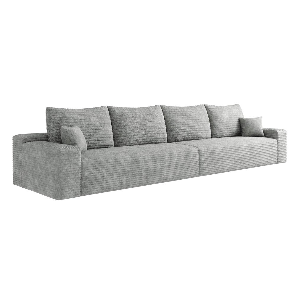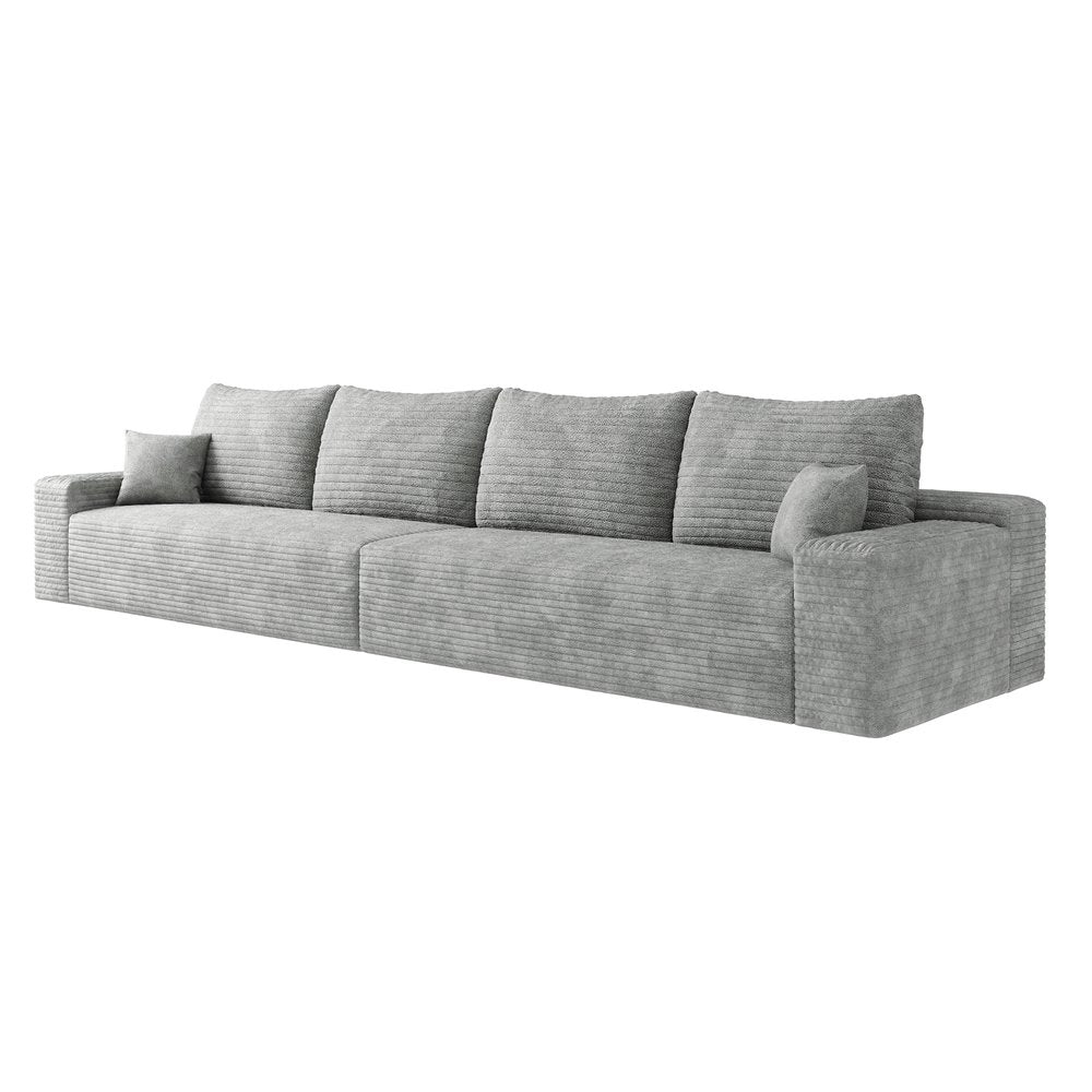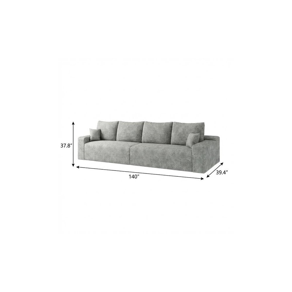 140" Gray Corduroy Modular Compression Foam Sofa With Toss Pillows