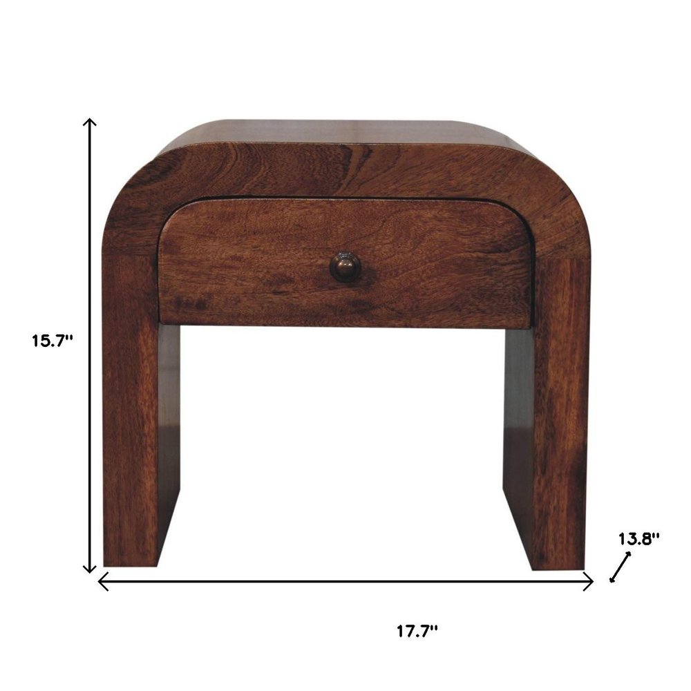 16" Brown Solid Wood One Drawer Arched Nightstand