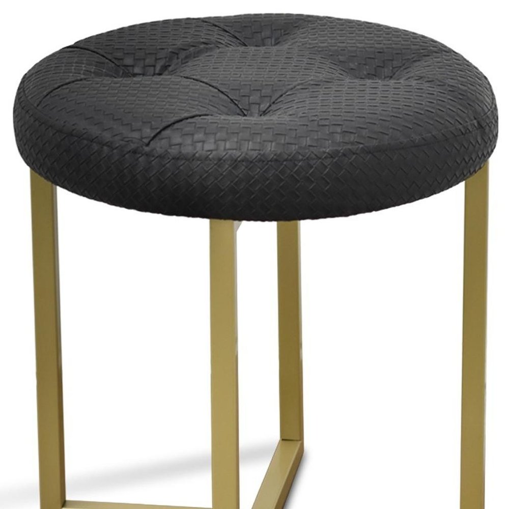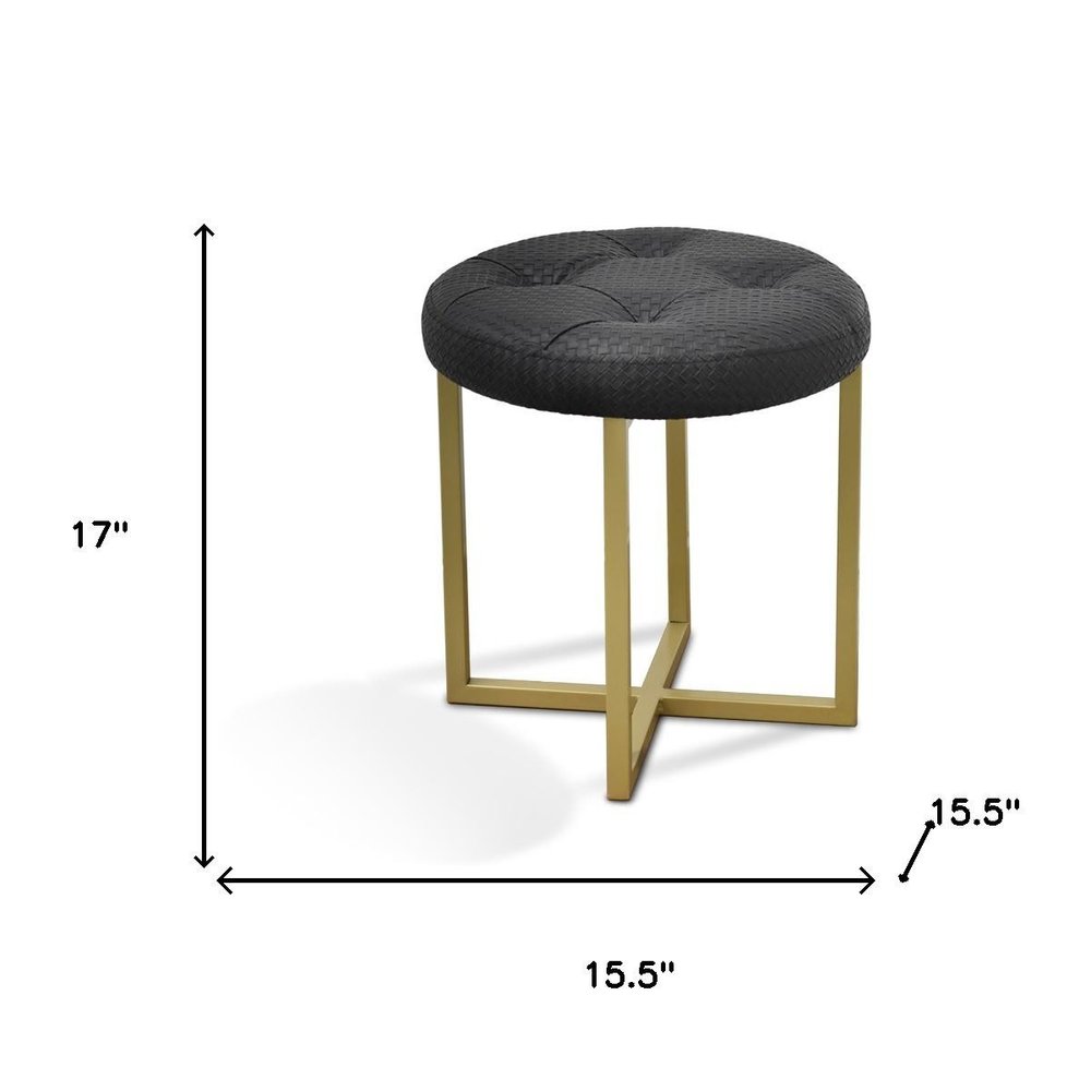 16" Gold Faux Leather Tufted Footstool