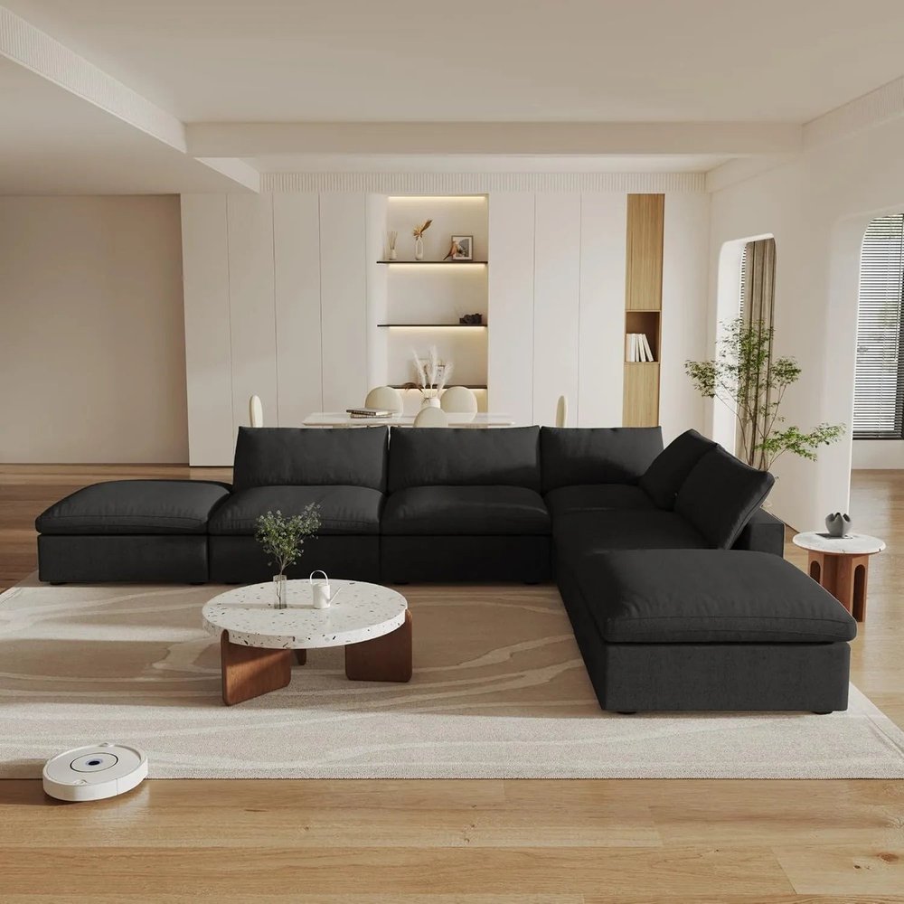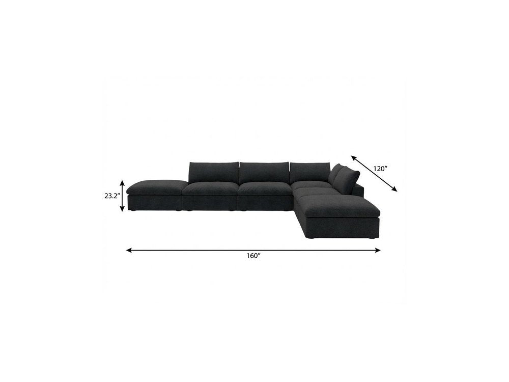 Black Linen Blend Modular L Shaped Six Piece Corner Sectional