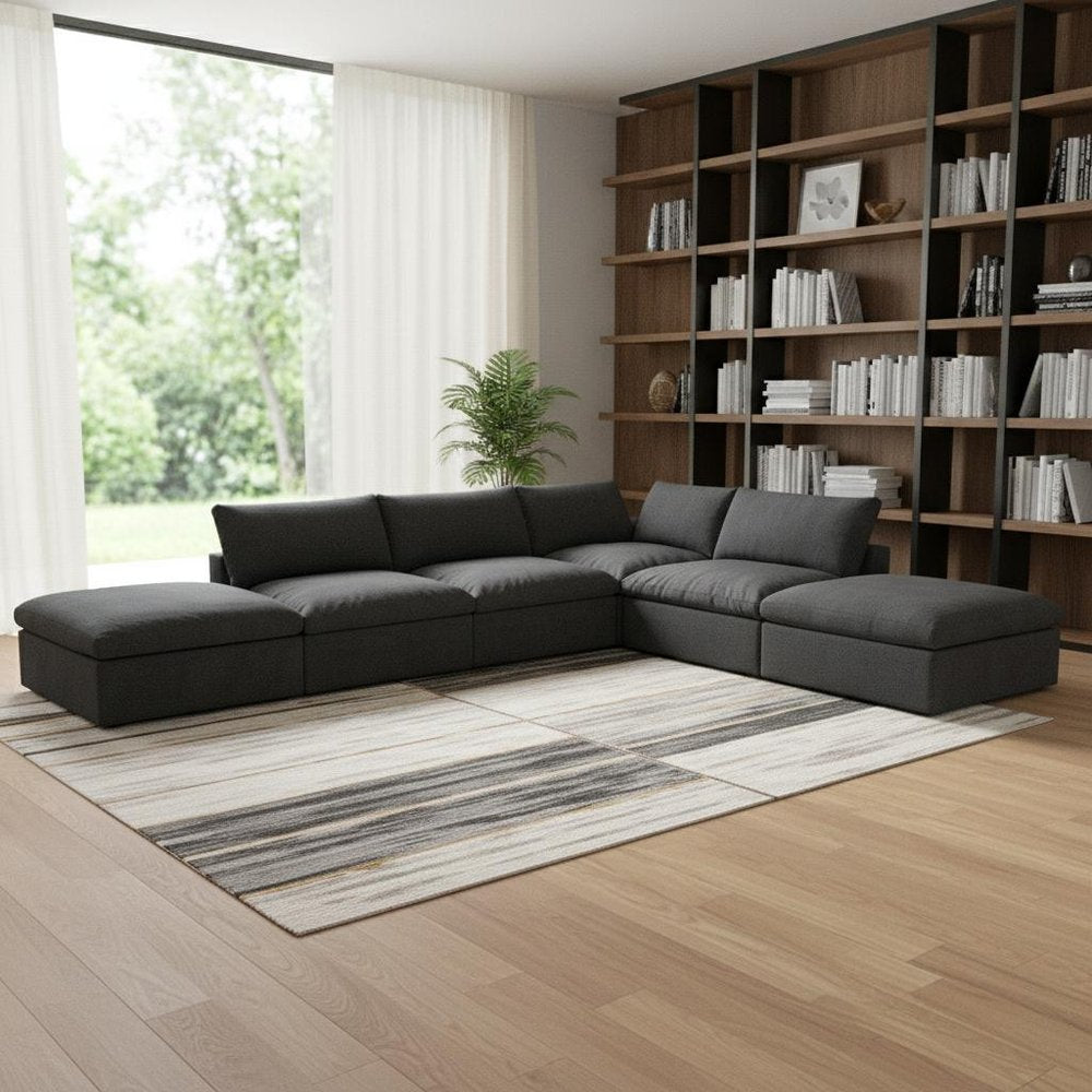 160" Black Linen Blend Modular Wood Sofa With Ottoman And Storage