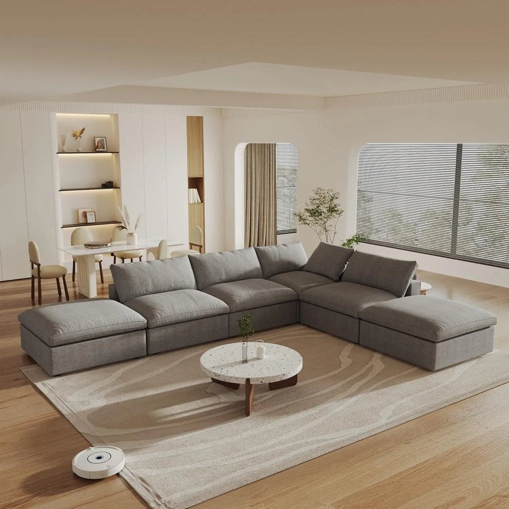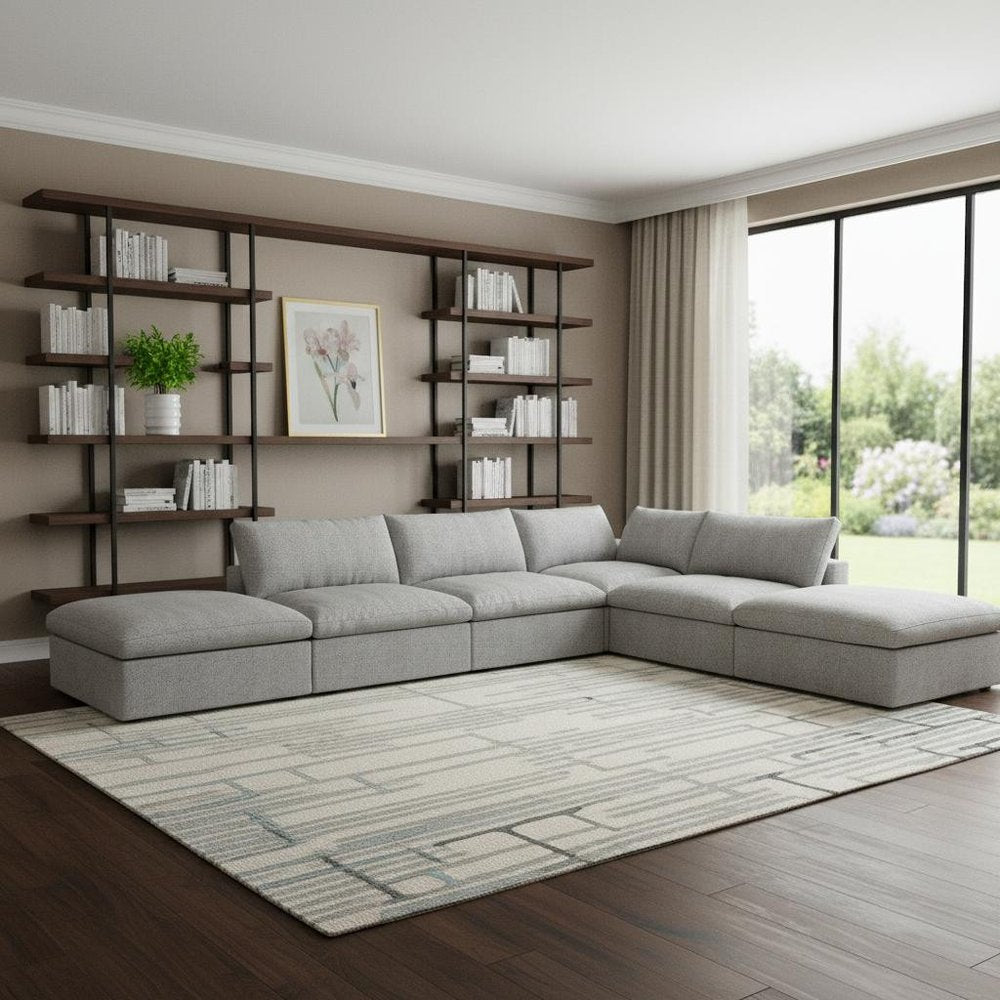 Add an air of fashion to your space with this fabulous 160-inch light gray linen blend modular sofa with ottoman... Read more