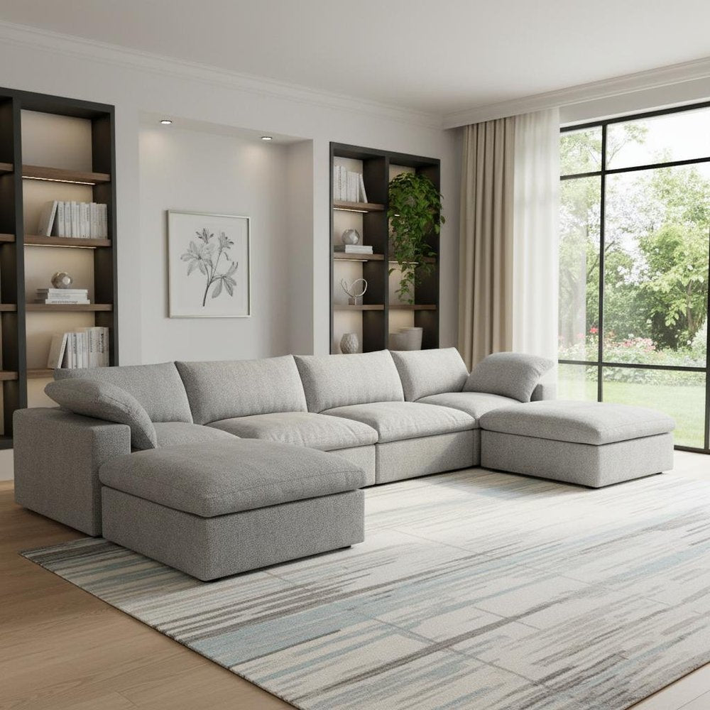 Transform your home's interior with this luxurious 160-inch light gray linen blend modular sofa with ottoman and storage. Solid colors... Read more