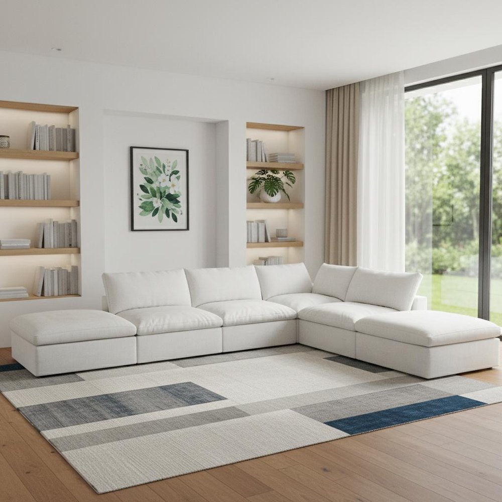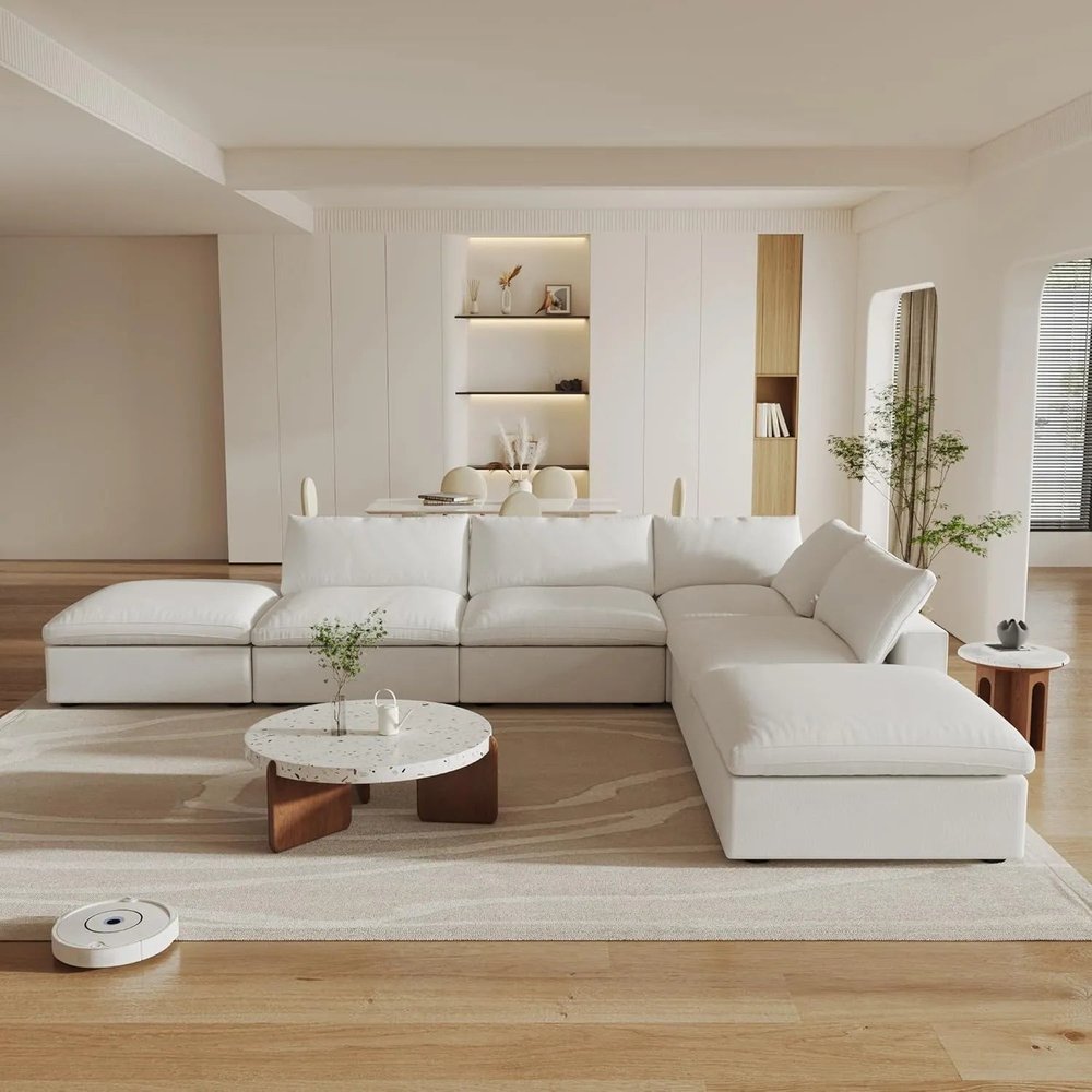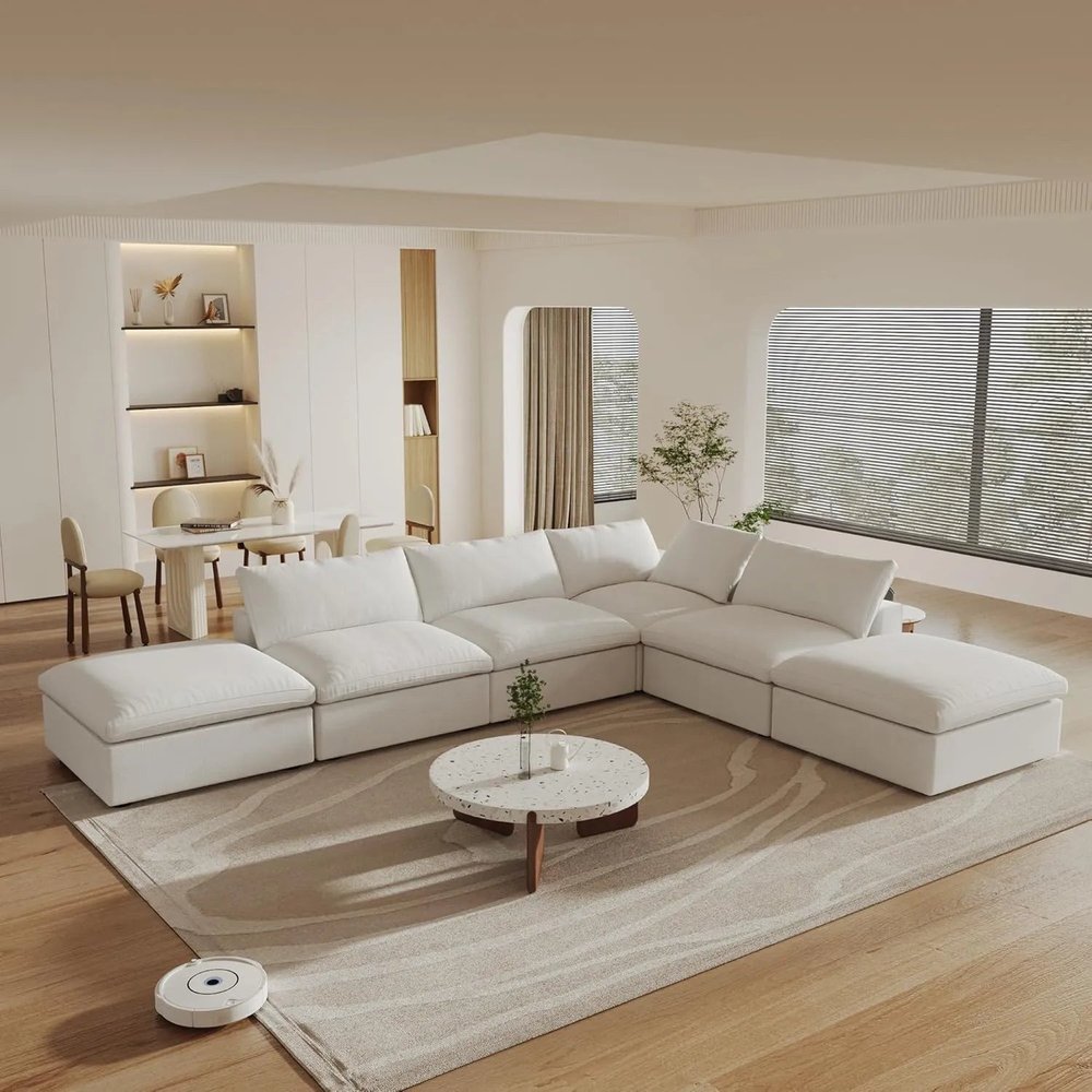Transform your home's interior with this luxurious 160-inch white linen blend modular wood sofa with ottoman and storage. Solid colors... Read more