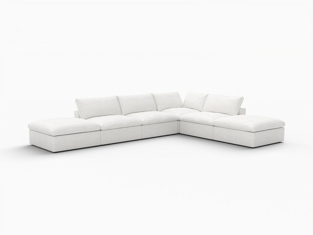 160" White Linen Blend Modular Wood Sofa With Ottoman And Storage