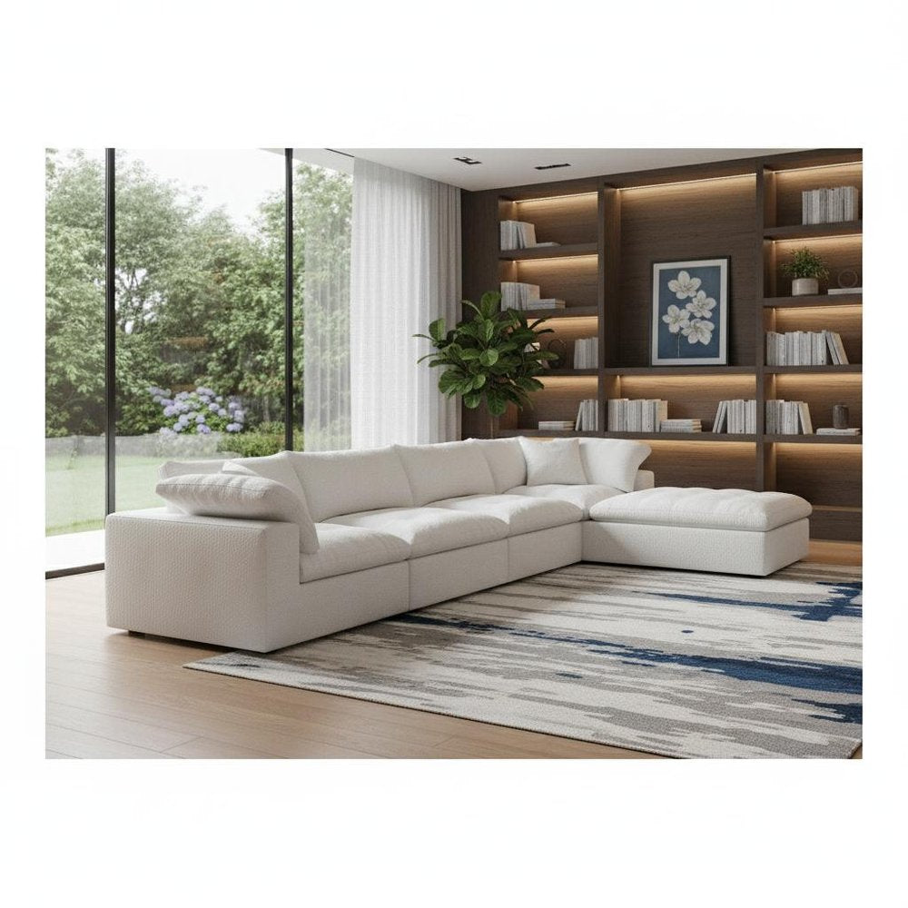 160" White Linen Blend Modular Sofa With Ottoman And Storage