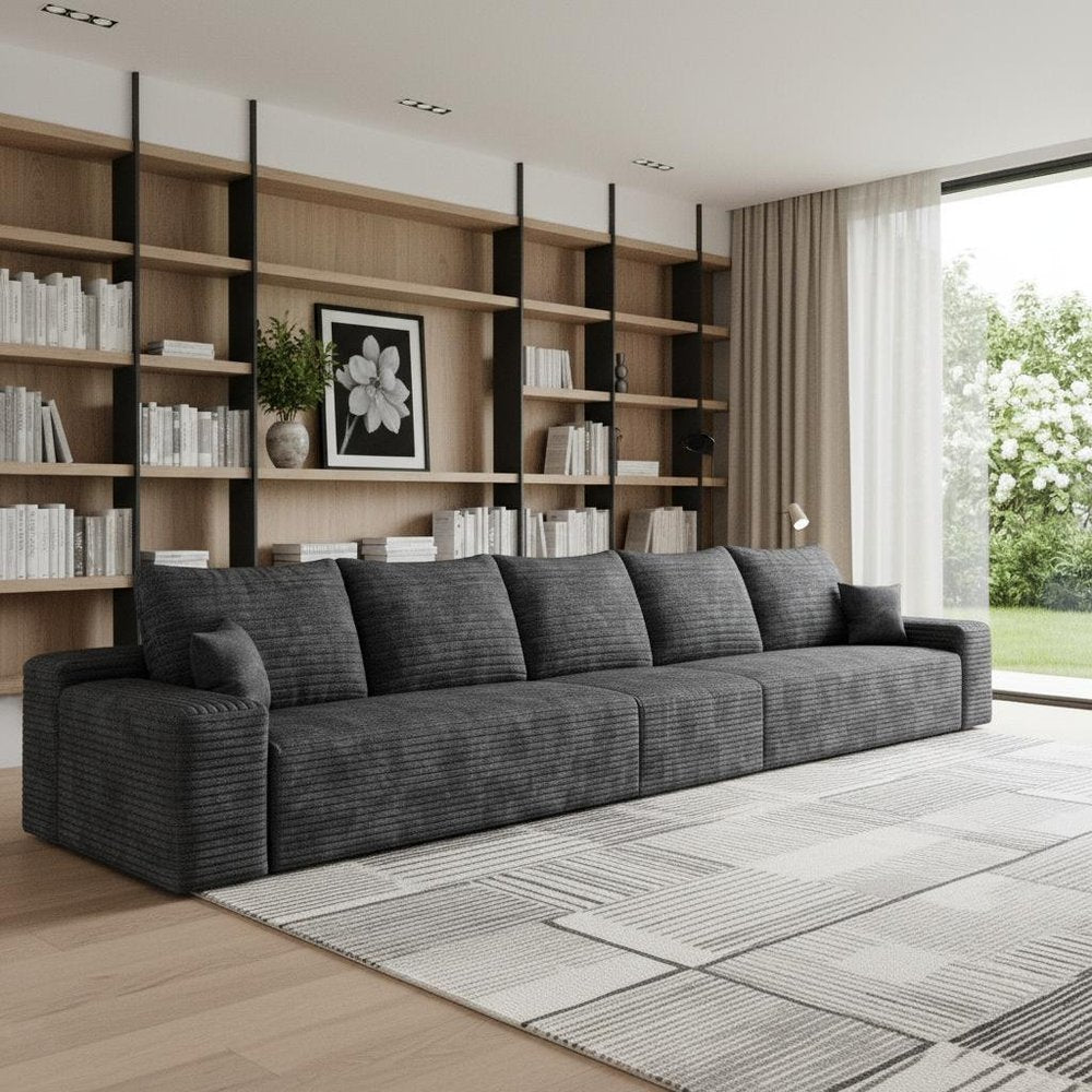 Transform your home's interior with this luxurious 168-inch black corduroy modular compression foam sofa with toss pillows. This solid color...