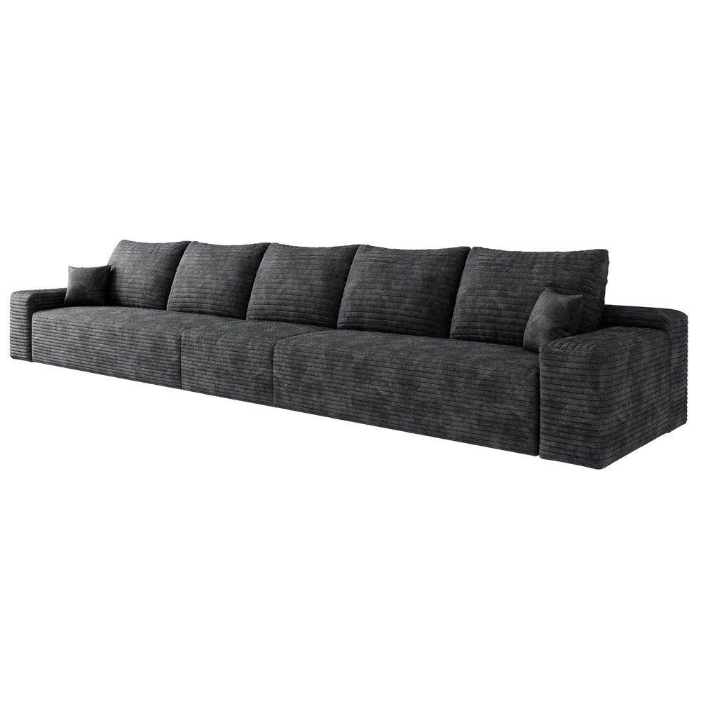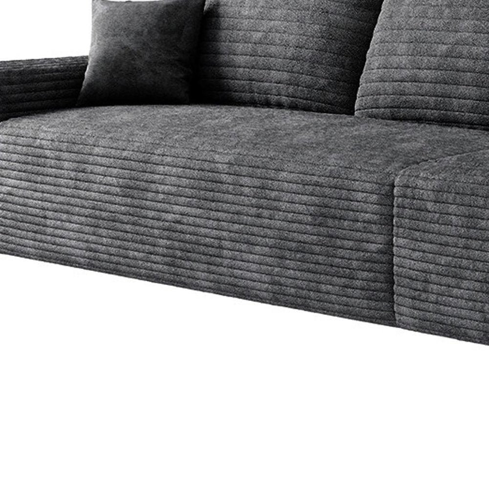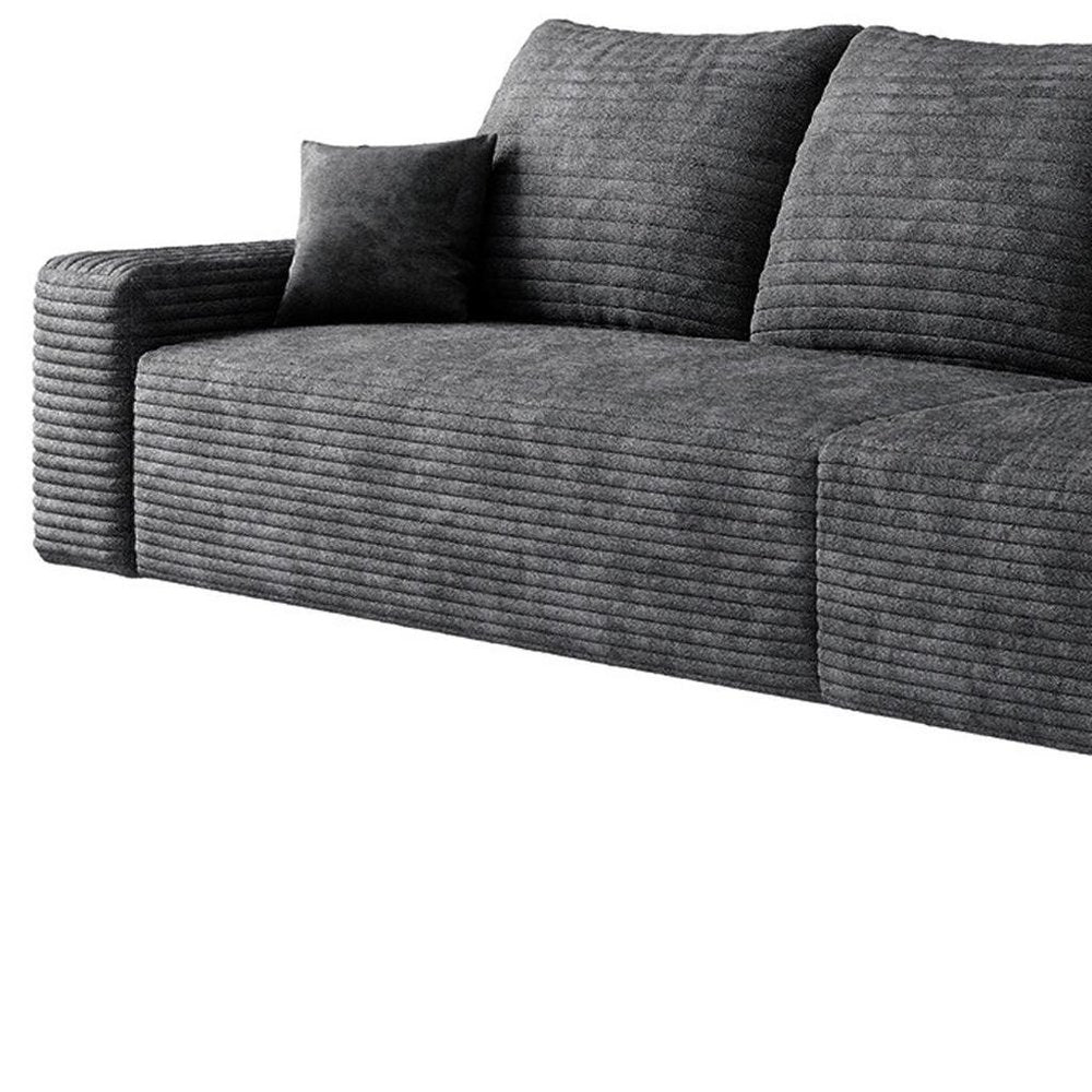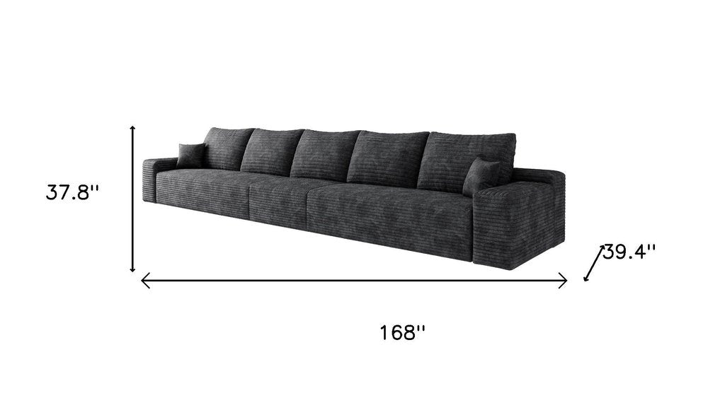 168" Black Corduroy Modular Compression Foam Sofa With Toss Pillows