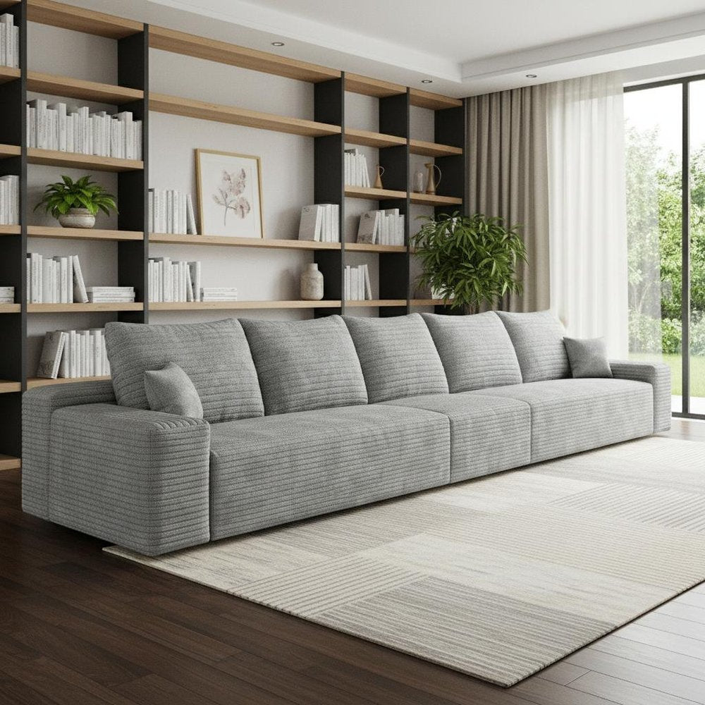 Transform your home's interior with this luxurious 168-inch gray corduroy modular compression foam sofa with toss pillows. This solid color...