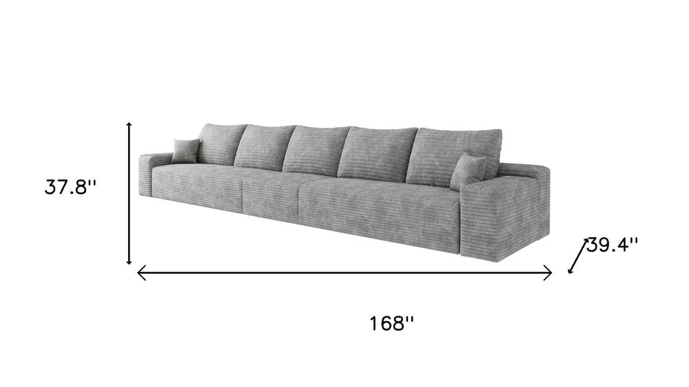 168" Gray Corduroy Modular Compression Foam Sofa With Toss Pillows
