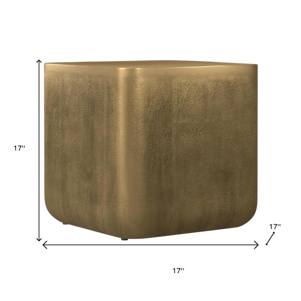 17" Antiqued Brass Aluminum Square End Table