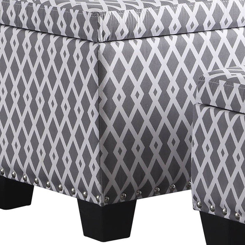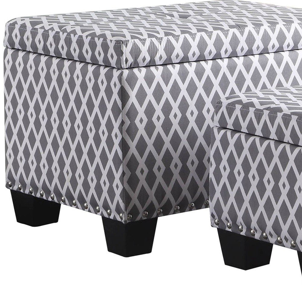 17" Gray White Black Gray and White Fabric Tufted Storage Ottoman
