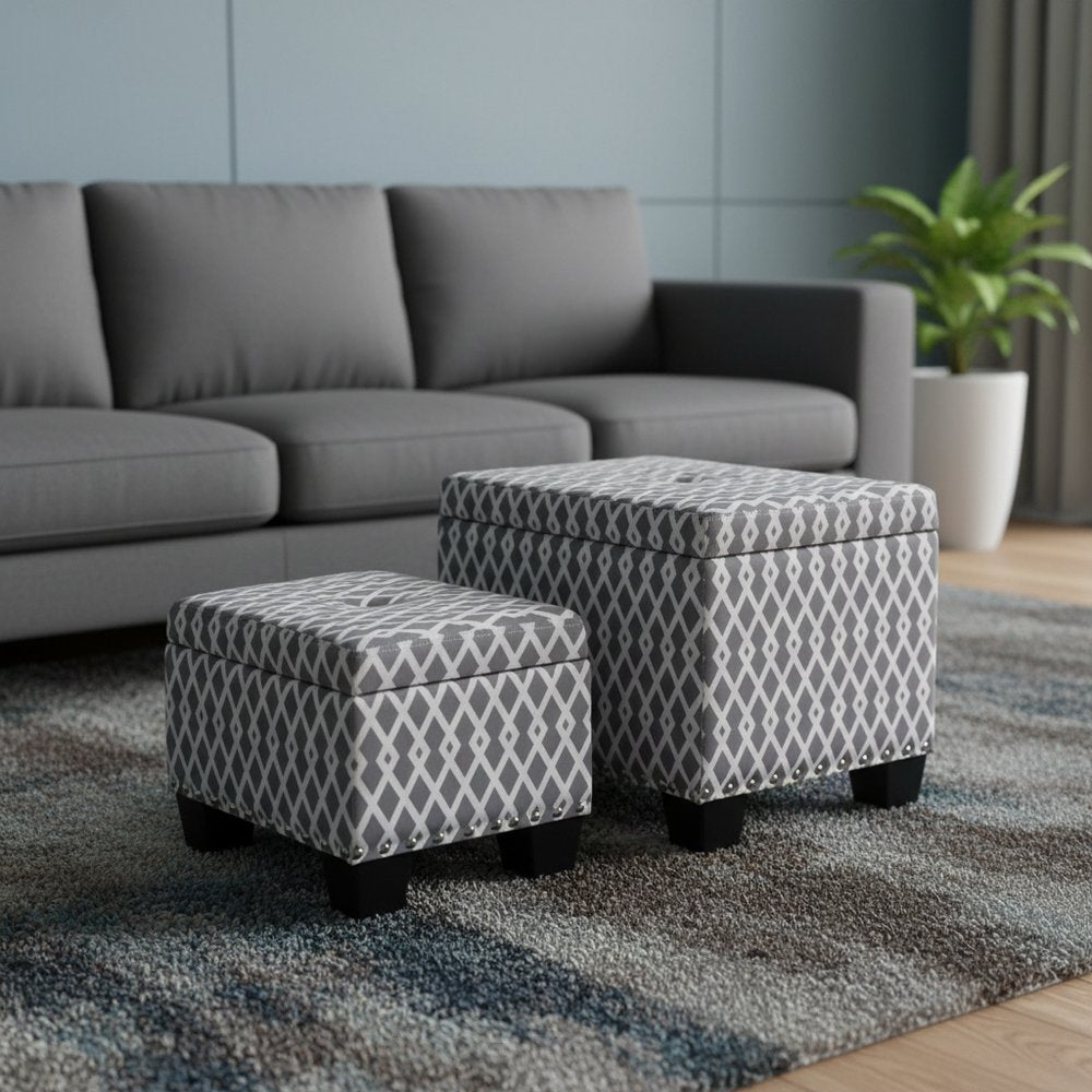 Get ready to relax with this 17-inch gray white black gray and white fabric tufted storage ottoman. Designed to discretely... Read more