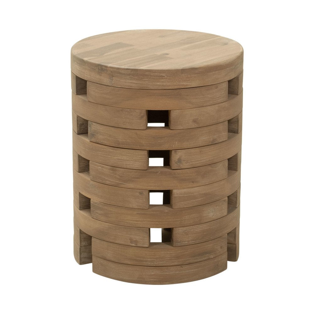 14" Natural Rounded Solid Wood Outdoor Side Table
