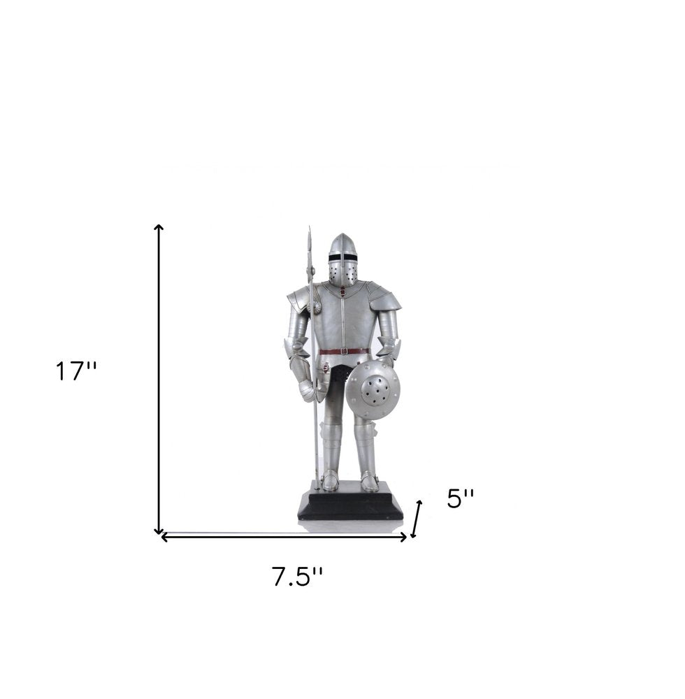 17" Silver Metal Hand Painted Figurine Tabletop Sculpture