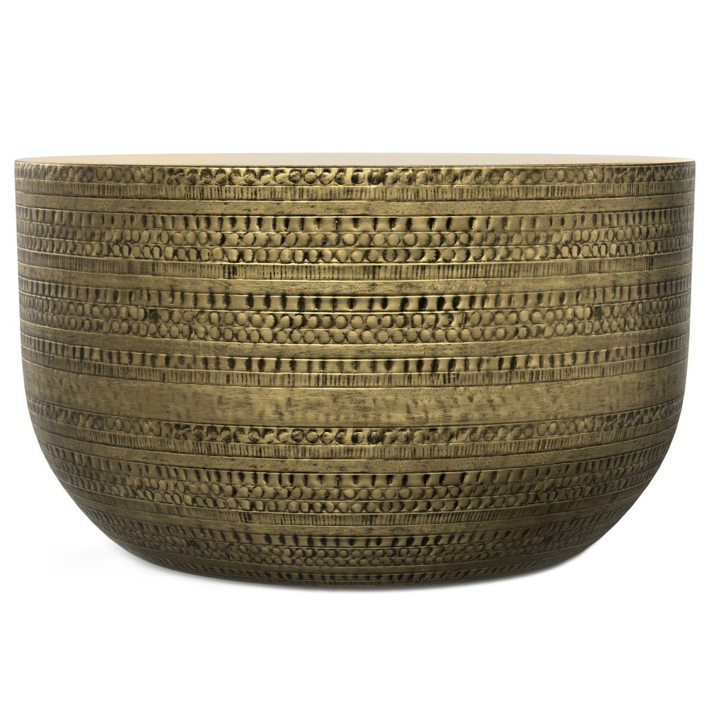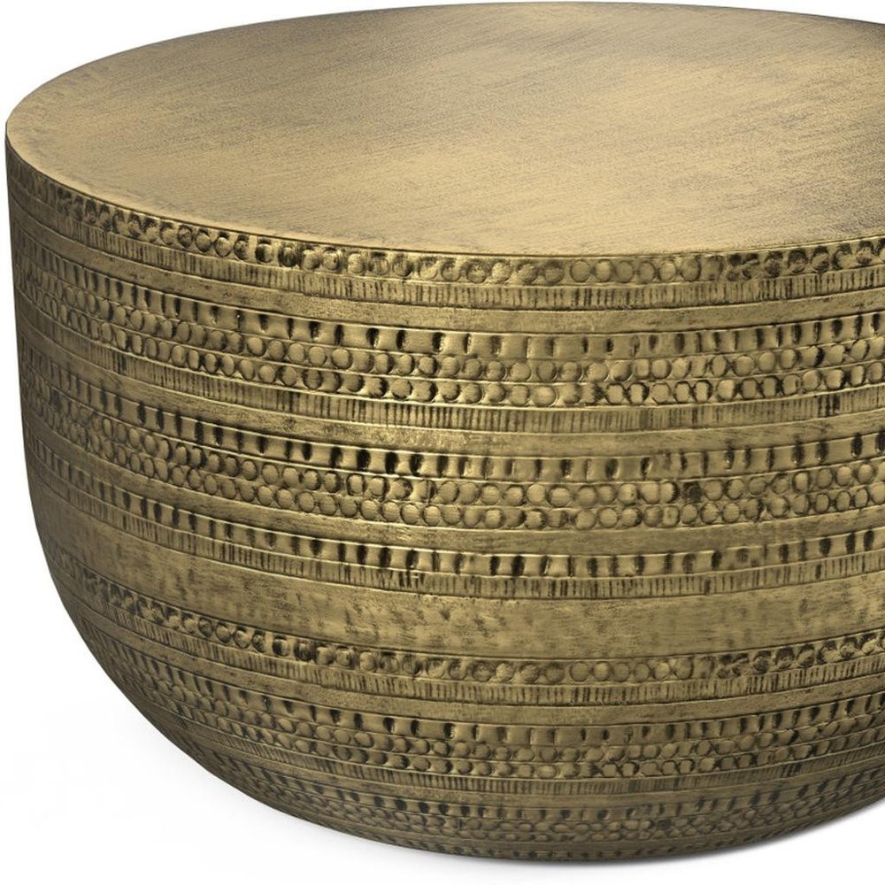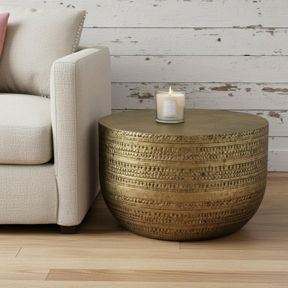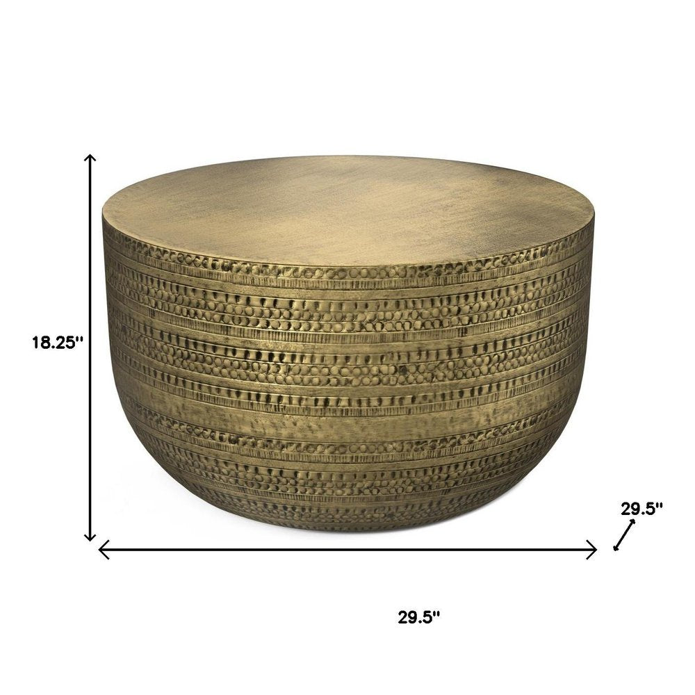 18" Antiqued Gold Metal Round Drum End Table
