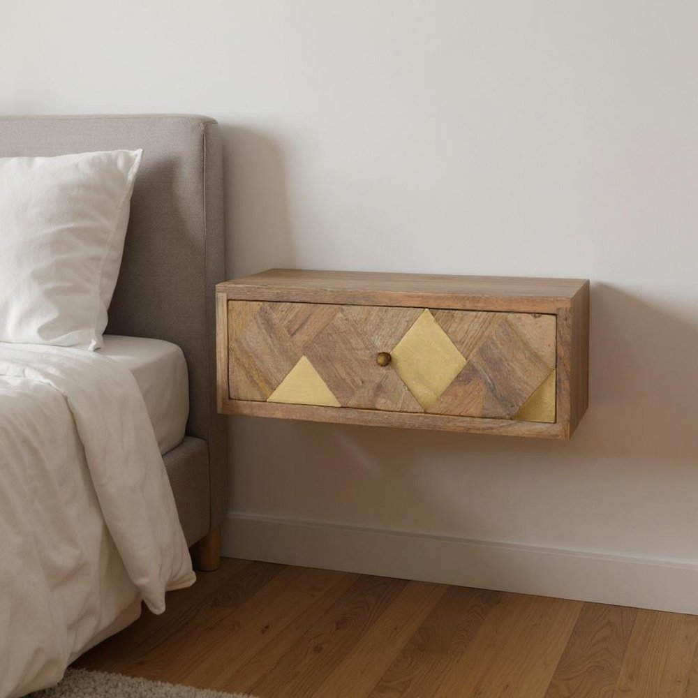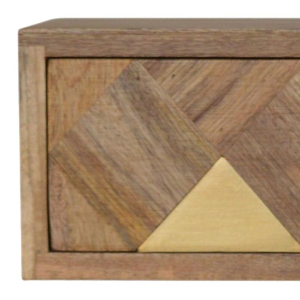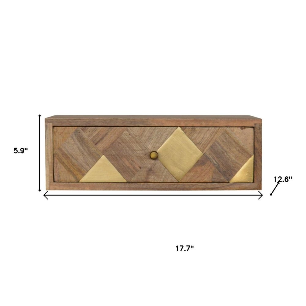 18" Brown Solid Wood Carved Geometric One Drawer Floating Nightstand